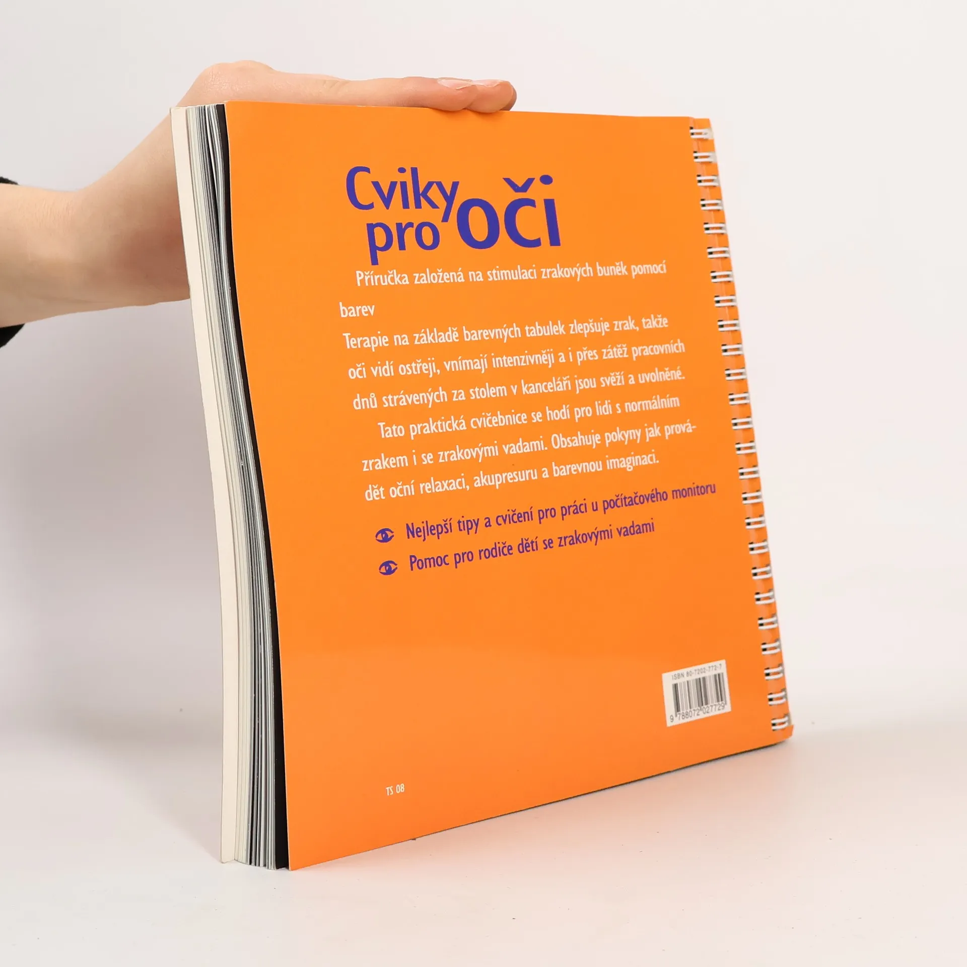 Příručka založená na stimulaci zrakových buněk pomocí barev. Terapie na základě barevných tabulek zlepšuje zrak, takže oči vidí ostřeji, vnímají intenzivnější a i přes zátěž pracovních dnů strávených za stolem v kanceláři jsou svěží a uvolněné. Tato praktická cvičebnice se hodí pro lidi s normálním zrakem i se zrakovými vadami. Obsahuje pokyny jak provádět oční relaxaci, akupresuru a barevnou imaginaci. Nejlepší tipy a cvičení pro práci u počítačového monitoru. Pomoc pro rodiče dětí se zrakovými vadami