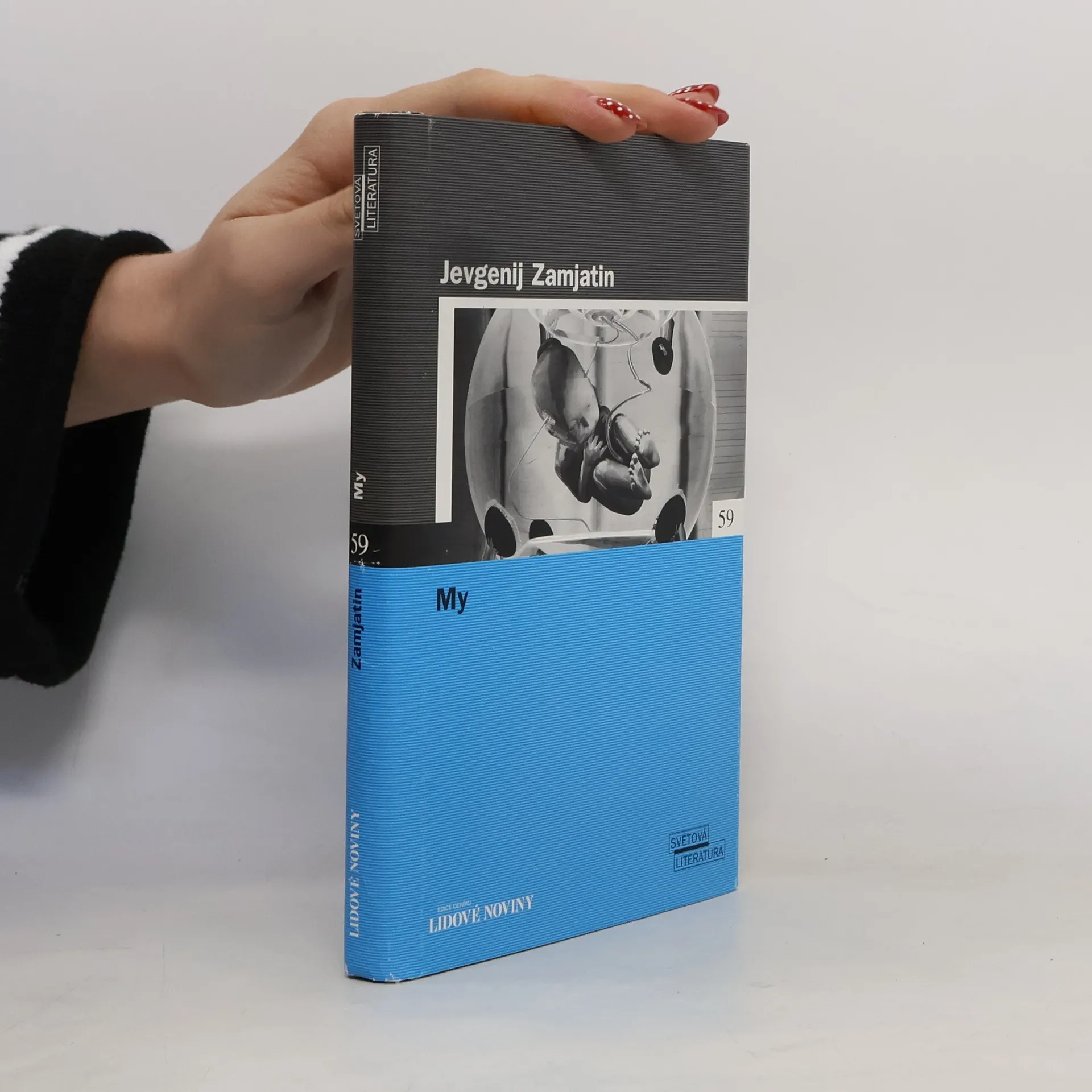 Své stěžejní dílo, románovou antiutopii My, napsal Zamjatin v roce 1920. V letech 1924/25 se objevila v překladech do češtiny, angličtiny a francouzštiny. V Rusku byla vydána až v letech přestavby, v roce 1987. Jádrem díla je život v „Jednotném státu“ vzniklém někdy ve třetím tisíciletí po „dvousetleté válce“. Lidé v této době už netrpí bídou, ztratili však jména a stali se pouhými „čísly“, lidmi – šroubky. Ženy jsou v pojmenovány samohláskami, např. I – 330, a muži souhláskami, např. hlavní hrdina je D – 503. Život těchto lidí je organizován a přísně střežen Úřadem Strážců. Všichni lidé žijí v prosklených domech, takže nemohou nic skrýt. Vstávají každý den všichni ve stejnou minutu, stejně odchází do práce a stejně jdou i na odpočinek. Na každé sousto při jídle mají předepsaných padesát skousnutí. Na dítě musí mít povolení, jinak jsou popraveni. Vůle kolektivu zde pod totalitním diktátem Dobroditele zcela vytlačuje svobodu lidského myšlení.... celý text