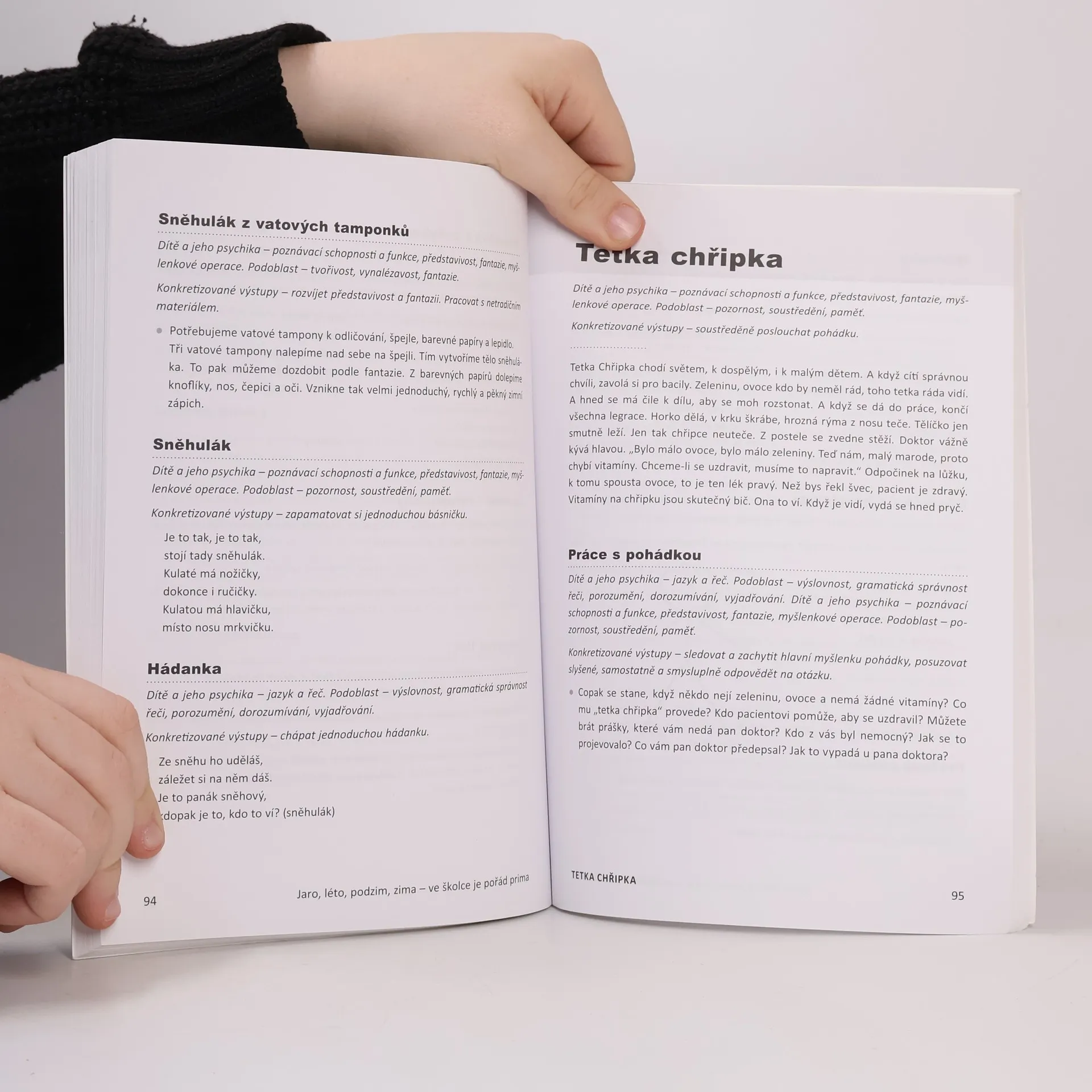 Publikace představuje soubor rozmanitých námětů k činnostem s dětmi předškolního a mladšího školního věku. Aktivity jsou členěny do bloků, každý blok je uveden motivačním příběhem. Úkoly se vyváženě věnují rozvíjení pohybových dovedností, zdokonalování řečového projevu, motorických a grafomotorických schopností, zrakového vnímání, sluchového vnímání, smyslu pro rytmus, prostorové orientace, pozornosti, paměti, logického myšlení, rozlišování barev, geometrických tvarů, výtvarného projevu, postřehu, tvořivosti atd. Aktivity zohledňují RVP PV. Deset kapitol je koncipováno jako průvodce školním rokem, činnosti lze tedy uplatňovat ve větších logických a tematických celcích, nicméně není to nutné, úkoly lze zařazovat i nezávisle na sobě. První vydání.