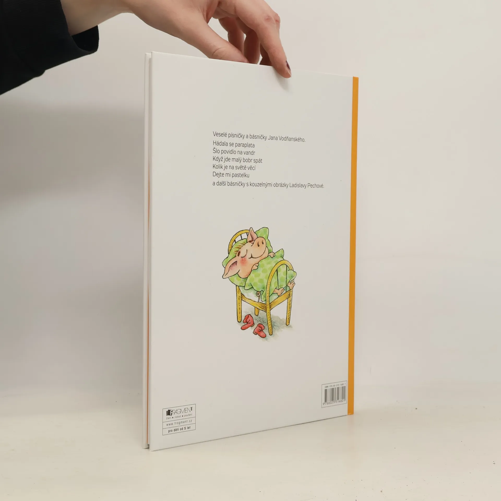 Veselé písničky a básničky Jana Vodňanského. Hádala se paraplata Šlo povidlo na vandr Když jde malý bobr spát Kolik je na světě věcí Dejte mi pastelku a další básničky s kouzelnými obrázky Ladislavy Pechové.