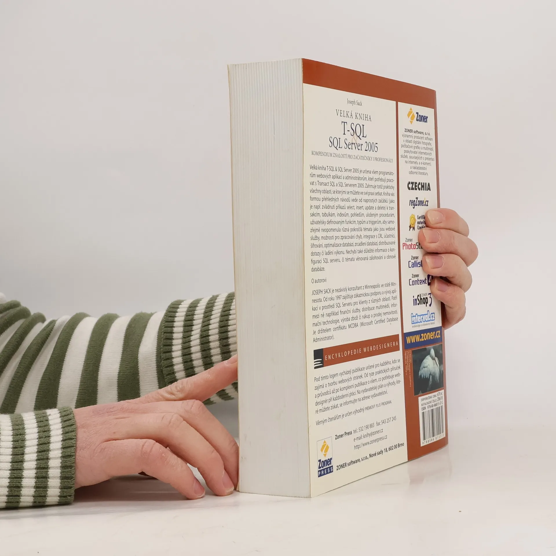 Velká kniha T-SQL & SQL Server 2005 je určena všem programátorů webových aplikací a administrátorům, kteří potřebují pracovat s Transact SQL a SQL Serverem 2005. Zahrnuje totiž praktick všechny oblasti, se kterými se můžete ve své praxi setkat. Kniha vás formou přehledných návodů vede od naprostých začátků (jako je např. zvládnutí příkazů select, insert, update a delete) k transakcím, tabulkám, indexům, pohledům, uloženým procedurám, uživatelsky definovaným funkcím, typům a triggerům, aby samozřejmě neopomenula různá pokročilá témata jako jsou webové služby, možnosti pro zpracování chyb, integrace s CRL, účastníci, šifrování, optimalizace databází, zrcadlení databází, distribuované dotazy či ladění výkonu. Nechybí také důležité informace o konfiguraciSQL serveru, či témata věnovaná zálohování a obnově databáze. O autorovi - JOSEPH SACK je nezávislý konzultant z Minneapolis ve státě Minnesota. Od roku 1997 vyvíjí a podporuje prostředí SQL Serveru pro klienty z různých oblastí. Patří mezi ně například finanční služby, distribuce multimédií, informační technologie, výroba zboží či nákup a prodej nemovitostí. Je držitelem certifikátu MCDBA (Microsoft Certified Database Administrator).