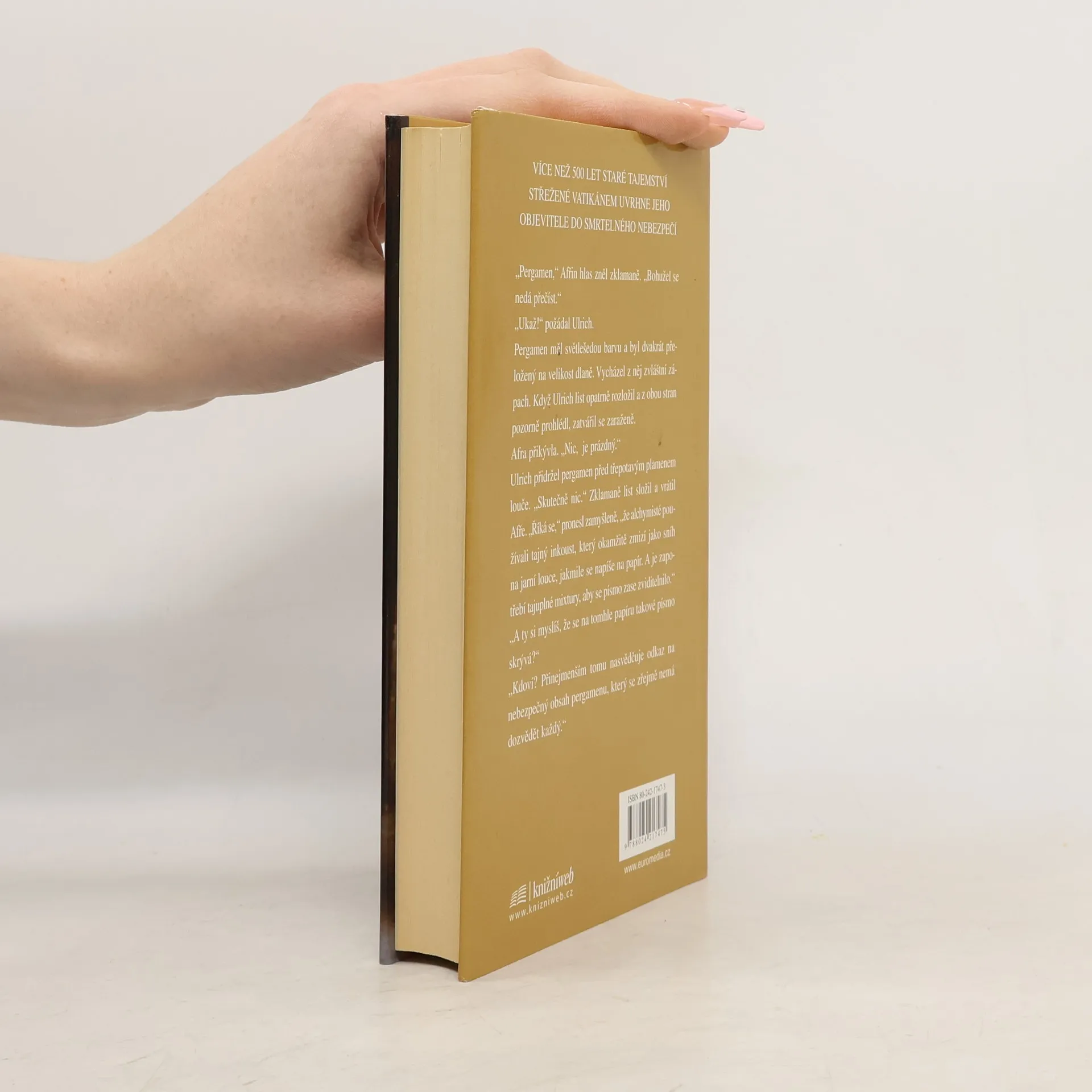 Když se na počátku 15. století náhle začaly hroutit velké katedrály, kostely a dómy, zachvátila obyvatelstvo panika. Je to pomsta bohů, nebo dílo ďábla? V těchto neklidných dobách zachrání čirou náhodou krásná Afra - dcera knihovníkova, jenž zemřel za záhadných okolností - život poněkud podivínskému staviteli katedrál Ulrichovi z Ensingenu. Ti dva se do sebe zamilují. V nejvyšší nouzi si Afra vzpomene na tajemnou skříňku, kterou jí kdysi zanechal otec s tím, že obsah skříňky jí sice může přinést bohatství, ale zároveň uvrhnout do zkázy celý západní svět... Prázdný pergamen představuje zpočátku pro oba milence hádanku. Teprve s pomocí alchymisty dokážou zviditelnit latinský text, jenž v tajném písmu vytvořil benediktinský mnich a v němž kajícně přiznává, že CONSTITUTUM CONSTANTINI, jímž císař Konstantin údajně daruje papeži právo vládnout nad západořímskou říší, je podvrh, který sepsal on sám. Je jasné, že něco takového chce církev dostat do rukou za každou cenu. Afra s Ulrichem se ocitají v ohrožení, a než si stačí uvědomit, jak nebezpečný dokument se jim dostal do rukou, jsou jim už na stopě papežovi pochopi z tajné sekty Lóže odpadlíků, aby je navždy umlčeli...... celý text
