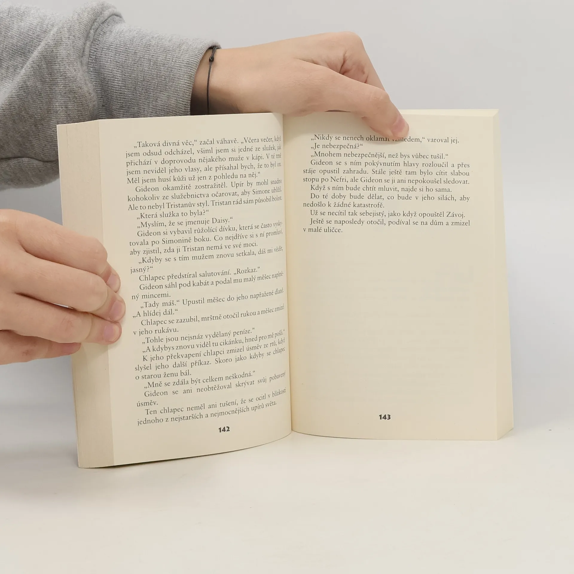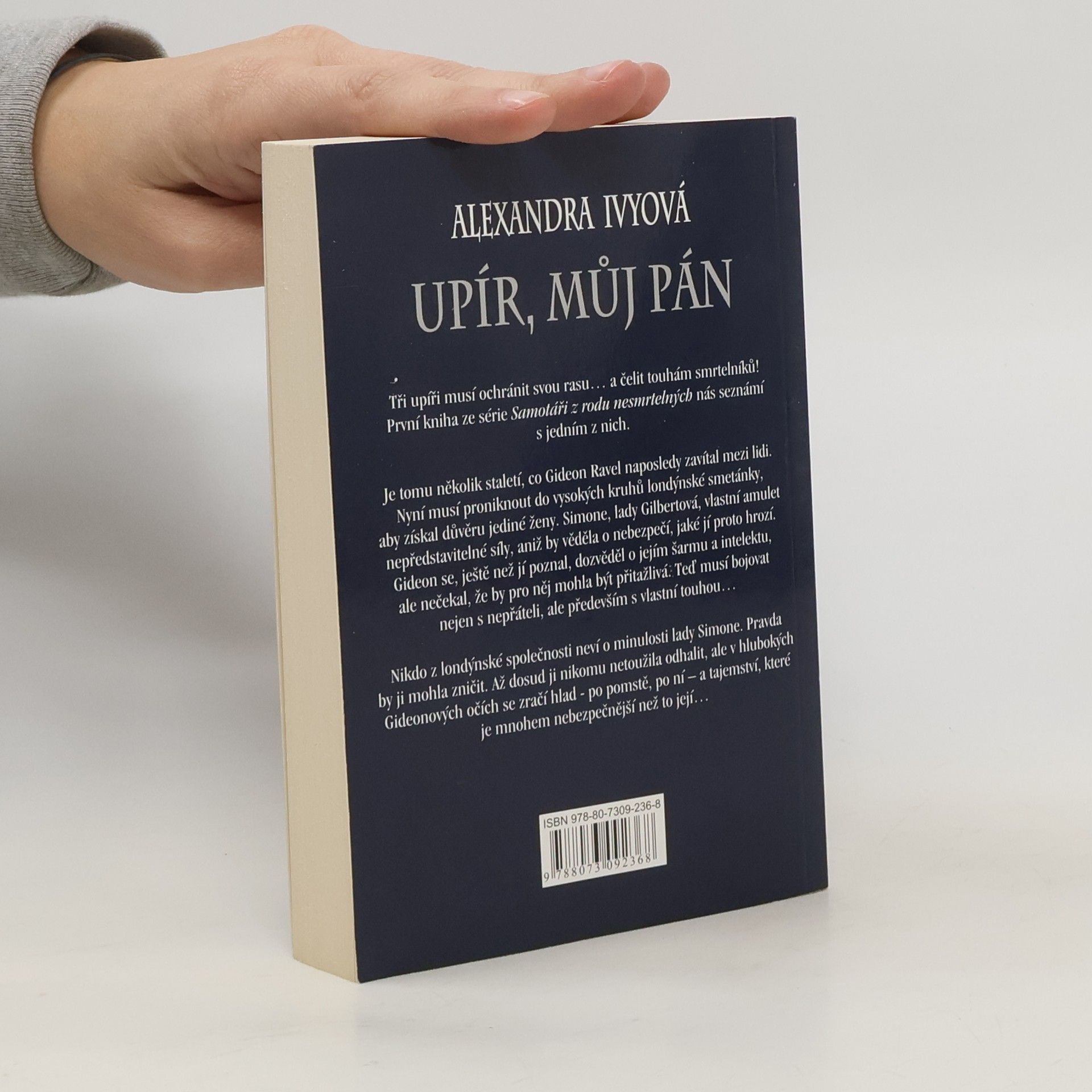 Tři upíři musí ochránit svou rasu... a čelit touhám smrtelníků! První kniha ze série Samotáři z rodu nesmrtelných nás seznámí s jedním z nich. Je tomu několik staletí, co Gideon Ravel naposledy zavítal mezi lidi. Nyní musí proniknout do vysokých kruhů londýnské smetánky, aby získal důvěru jediné ženy. Simone, lady Gilbertová, vlastní amulet nepředstavitelné síly, aniž by věděla o nebezpečí, jaké jí proto hrozí. Gideon se, ještě než jí poznal, dozvěděl o jejím šarmu a intelektu, ale nečekla, že by pro něj mohla být přitažlivá. Teď musí bohovat nejen s nepřáteli, ale především s vlastní touhou... Nikdo z londýnské společnosti neví o minulosti lady Simone. Pravda by ji mohla zničit. Až dosud ji nikomu netoužila odhalit, ale v hlubokých Gideonových očích se zračí hlad - po pomstě, po ní - a tajemství, které je mnohem nebezpečnější než to její...