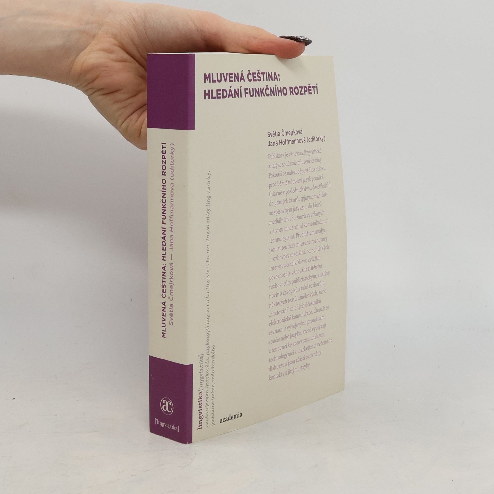 Publikace je věnována lingvistické analýze současné mluvené češtiny. Pokouší se nalézt odpověď na otázku, proč běžně mluvený jazyk proniká (hlavně v posledních dvou desetiletích) do psaných žánrů, spjatých tradičně se spisovným jazykem, do žánrů mediálních i do žánrů vyvolaných k životu moderními komunikačními technologiemi. Předmětem analýz jsou autentické mluvené rozhovory mediální, od politických interview k talk show; zvláštní pozornost je věnována tištěným rozhovorům publicistickým, analýze novin a časopisů a také rozborům některých textů uměleckých, nebo „chatování“ mladých účastníků elektronické komunikace. Čtenáři se seznámí s vývojovými proměnami současného jazyka, které vyplývají z tendencí ke konverzacionalizaci, technologizaci a marketizaci veřejného diskurzu a jsou zčásti ovlivněny kontakty s jinými jazyky.