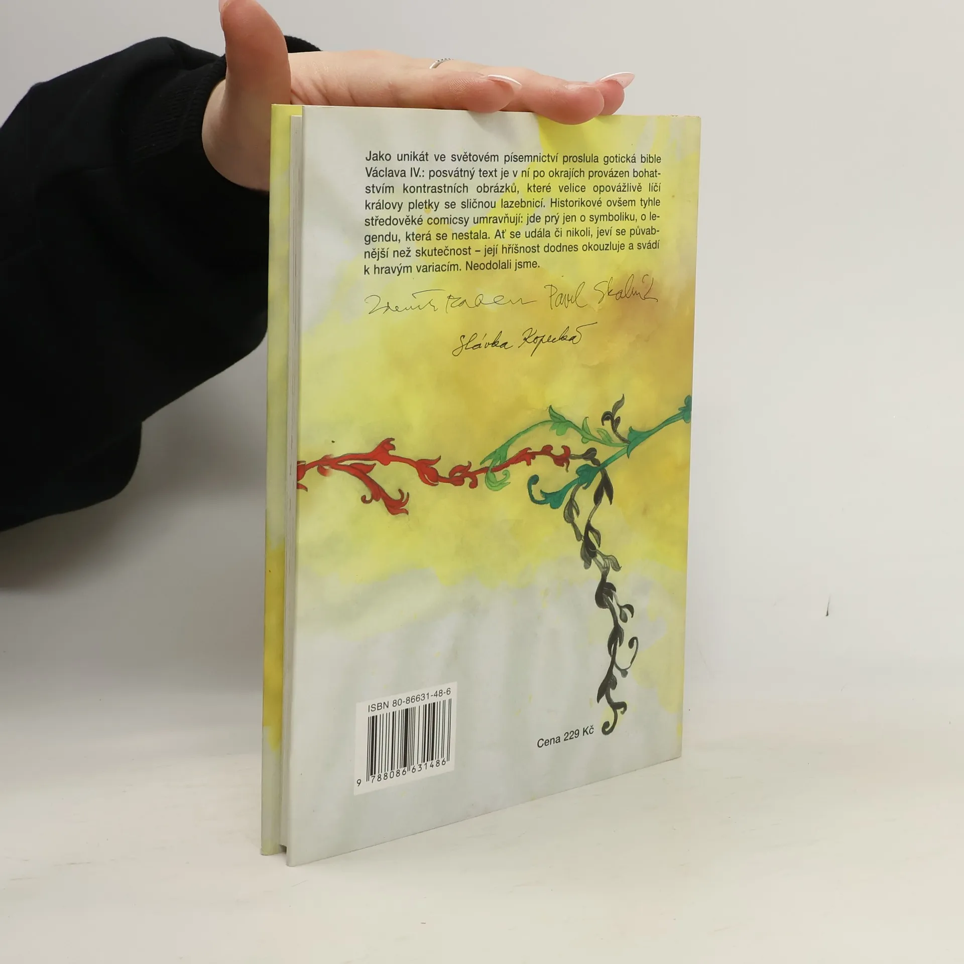 Jako unikát ve světovém písemnictví proslula gotická bible Václava IV.: posvátný text je v ní po okrajích provázen bohatstvím kontrastních obrázků, které velice opovážlivě líčí královy pletky se sličnou lazebnicí. Historikové ovšem tyhle středověké comicsy umravňují: jde prý jen o symboliku, o legendu, která se nestala. Ať se udála či nikoli, jeví se půvabnější než skutečnost - její hříšnost dodnes okouzluje a svádí k hravým variacím.