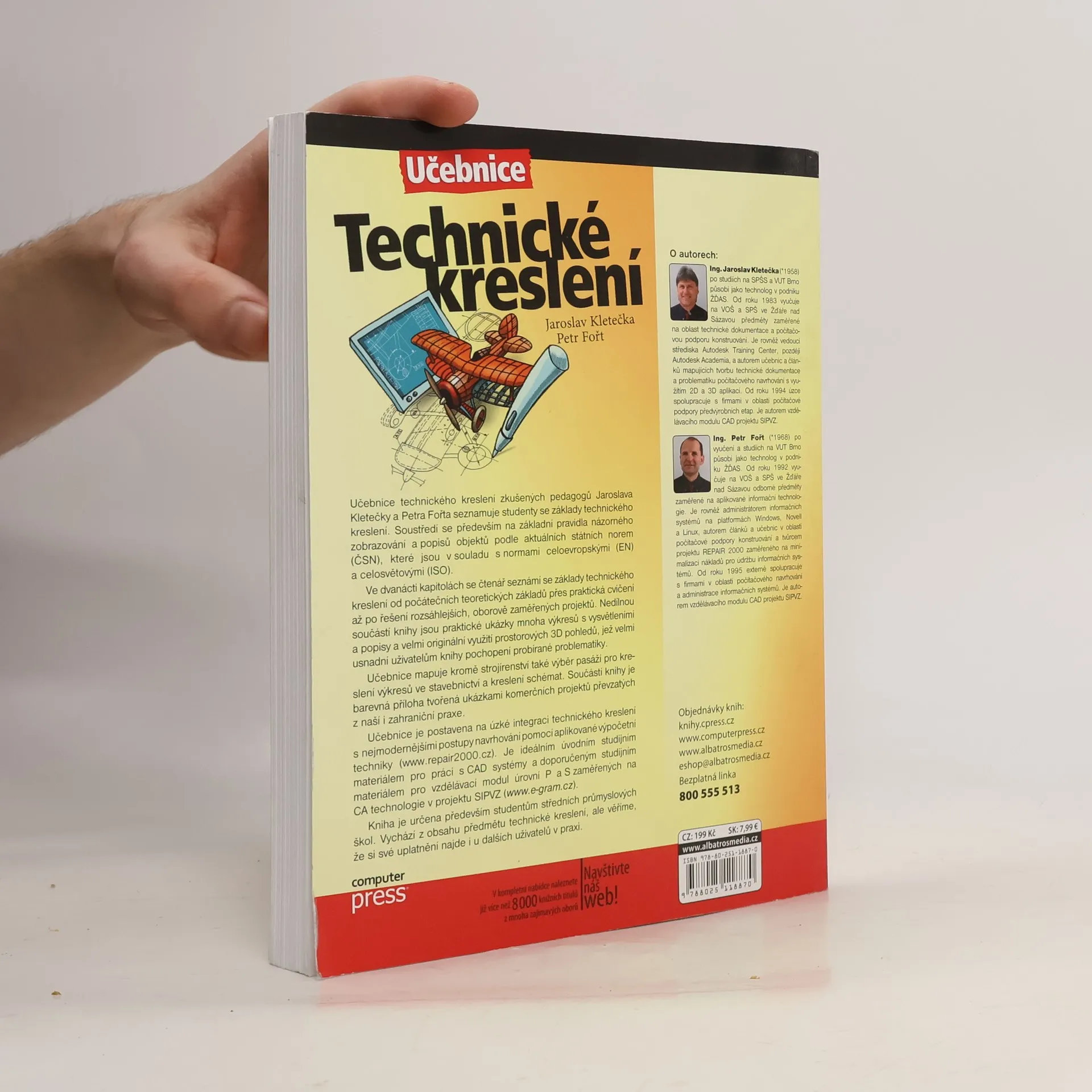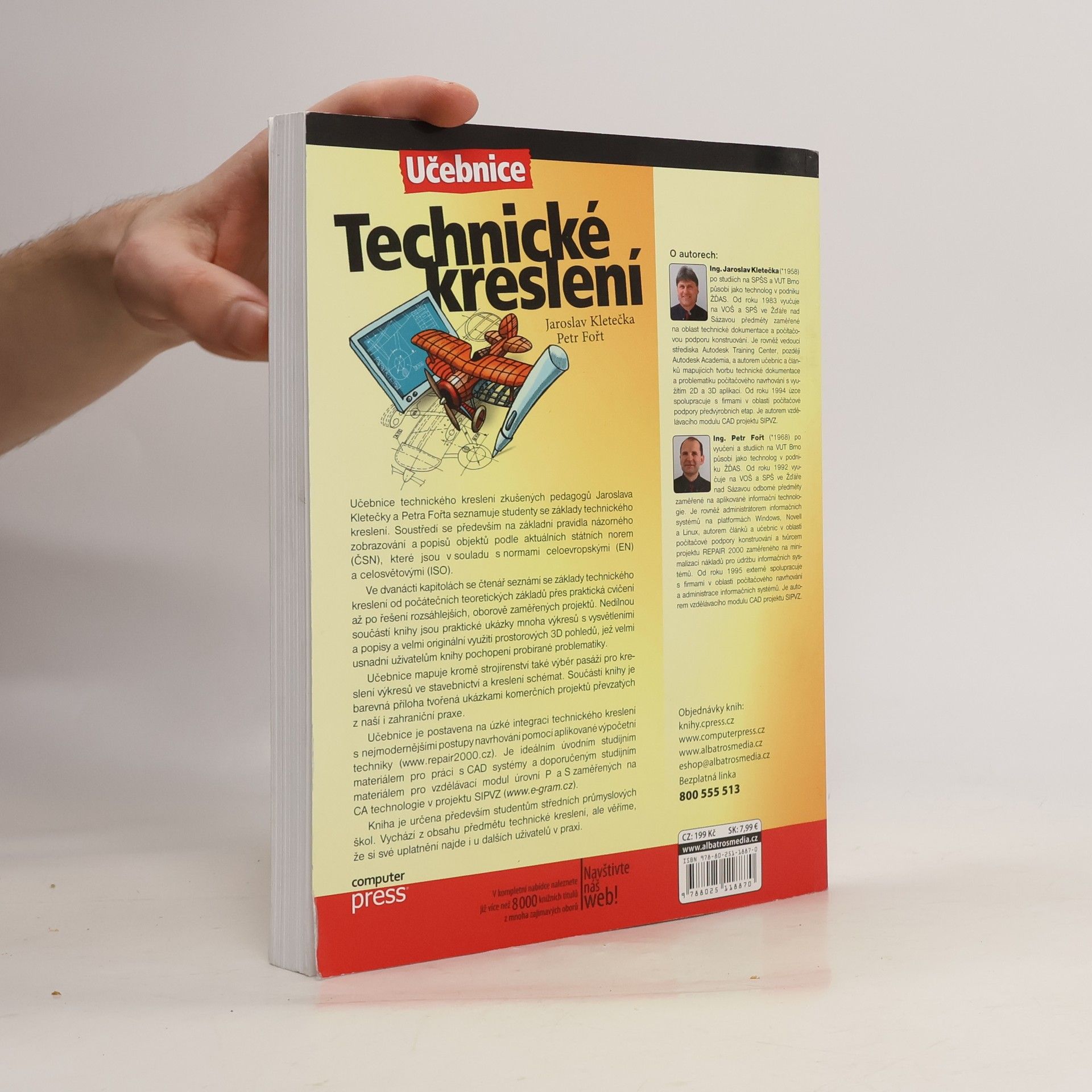 Aktualizovaná učebnice pro střední školy. Soustředí se především na základní pravidla názorného zobrazování a popisů objektů podle aktuálních státních norem (ČSN), které jsou v souladu s normami celoevropskými (EN) a celosvětovými (ISO). Ve dvanácti kapitolách se čtenář seznámí sezáklady technického kreslení od teoretických základů přes praktická cvičení až po řešení rozsáhlejších, oborově zaměřených projektů.