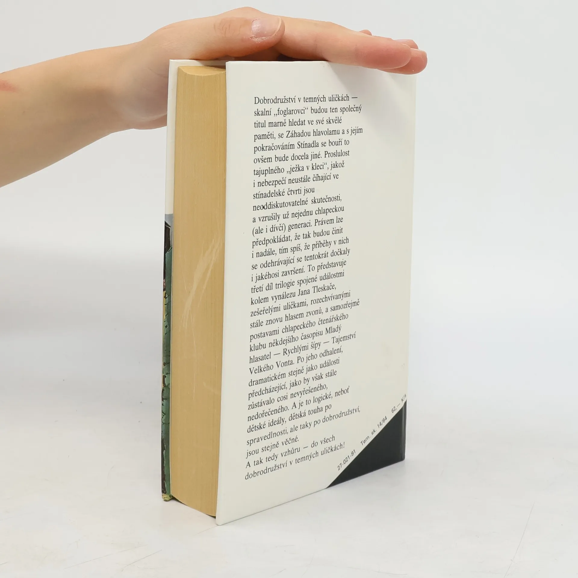 Dobrodružství v temných uličkách - skalní "foglarovci" budou ten společný titul marně hledat ve své skvělé paměti, se Záhadou hlavolamu a s jejím pokračováním Stínadla se bouří to ovšem bude docela jiné. Proslulost tajuplného "ježka v kleci", jakož i nebezpečí neustále číhající vestínadelské čtvrti jsou neoddiskutovatelné skutečnosti, a vzrušily už nejednu chlapeckou (ale i dívčí) generaci. Právem lze předpokládat, že tak budou činit i nadále, tím spíš, že příběhy v nich se odehrávající se tentokrát dočkaly i jakéhosi završení.To představuje třetí díl trilogie spojené událostmi kolem vynálezu Jana Tleskače, zešeřelými uličkami, rozechvívanými stále znovu hlasem zvonů, a samozřejmě postavami chlapeckého čtenářského klubu někdejšího časopisu Mladý hlasatel - Rychlými šípy - Tajemství Velkého Vonta. Po jeho odhalení, dramatickém stejně jako události předcházející, jako by však stále zůstávalo cosi nevyřešeného, nedořečeného. A je to logické, neboť dětské ideály, dětská touha po spravedlnosti, ale tady po dobrodružství, jsou stejně věčné. A tak tedy vzhůru - do vše dobrodružství v temných uličkách! 1/ Záhada hlavolamu 2/ Stínadla se bouří 3/ Tajemství Velké Vonta