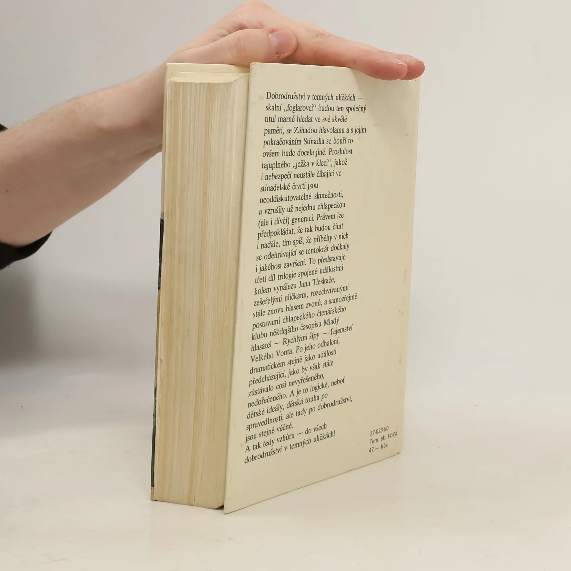 Dobrodružství v temných uličkách - skalní "foglarovci" budou ten společný titul marně hledat ve své skvělé paměti, se Záhadou hlavolamu a s jejím pokračováním Stínadla se bouří to ovšem bude docela jiné. Proslulost tajuplného "ježka v kleci", jakož i nebezpečí neustále číhající vestínadelské čtvrti jsou neoddiskutovatelné skutečnosti, a vzrušily už nejednu chlapeckou (ale i dívčí) generaci. Právem lze předpokládat, že tak budou činit i nadále, tím spíš, že příběhy v nich se odehrávající se tentokrát dočkaly i jakéhosi završení.To představuje třetí díl trilogie spojené událostmi kolem vynálezu Jana Tleskače, zešeřelými uličkami, rozechvívanými stále znovu hlasem zvonů, a samozřejmě postavami chlapeckého čtenářského klubu někdejšího časopisu Mladý hlasatel - Rychlými šípy - Tajemství Velkého Vonta. Po jeho odhalení, dramatickém stejně jako události předcházející, jako by však stále zůstávalo cosi nevyřešeného, nedořečeného. A je to logické, neboť dětské ideály, dětská touha po spravedlnosti, ale tady po dobrodružství, jsou stejně věčné. A tak tedy vzhůru - do vše dobrodružství v temných uličkách! 1/ Záhada hlavolamu 2/ Stínadla se bouří 3/ Tajemství Velké Vonta