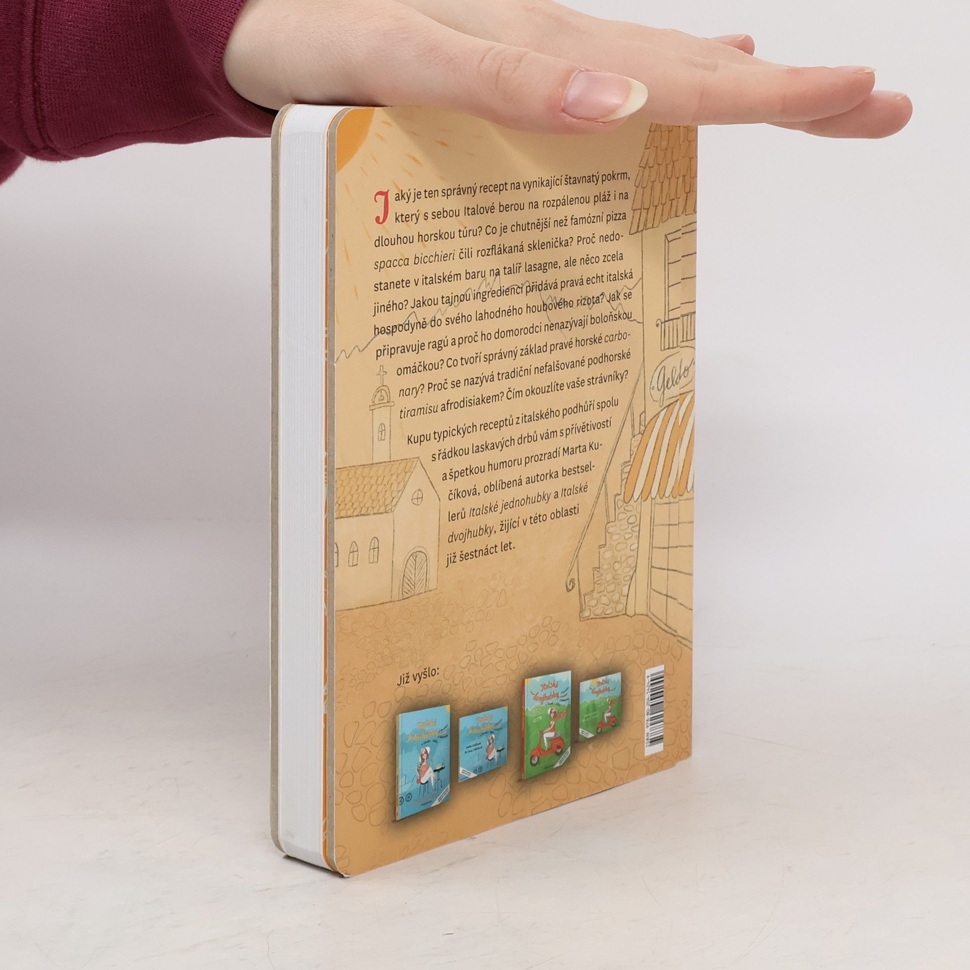 Jaký je ten správný recept na vynikající oblíbený šťavnatý pokrm, který s sebou Italové berou na rozpálenou pláž či na dlouhou horskou túru? Co je chutnější než famózní pizza spacca bicchieri čili rozflákaná sklenička? Jak je možné, že nevařící praktik zvládne levou zadní přípravu oblíbené peperonaty čili paprikového blaha? Proč nedostanete v italském baru na talíř lasagne, ale něco zcela jiného? Jakou tajnou ingredienci přidává pravá echt italská hospodyně do svého lahodného houbového rizota? Jak se připravuje ragú a proč ho domorodci nenazývají boloňskou omáčkou? Co tvoří správný základ pravé horské carbonary? Proč se nazývá tradiční nefalšované podhorské tiramisu afrodisiakem? A jak ho připravit i v ovocné variantě? Co myslíte, jaké těstoviny milují italské děti, vybíraví muži, ženy v krizi i nekrizi, postarší štramandy i se svými fešáky, notabene tedy celý národ italský? A proč mají přívlastek udobřující? Čím okouzlíte vaše strávníky? Toto a mnohem více s laskavými drby a kupou typických receptů z italského dolomitského podhůří určených jak pro vařící a kuchařící nadšence, tak pro čistě nevařící praktiky, vám s přívětivostí, špetkou humoru a radostí prozradí Marta Kučíková, oblíbená autorka bestsellerů Italské jednohubky a Italské dvojhubky, žijící v této oblasti již šestnáct let.