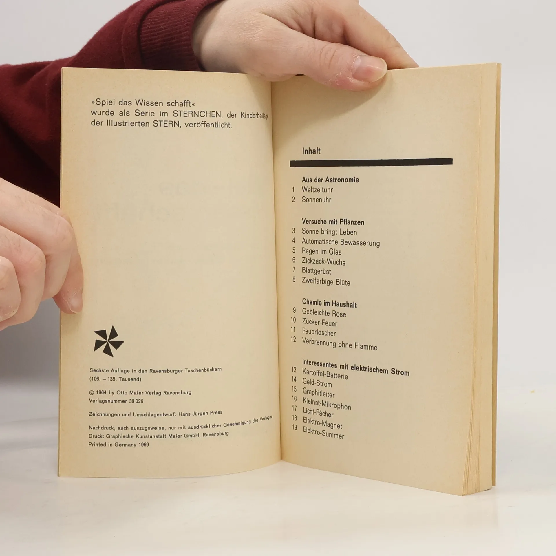 Die Experimente aus den Bereichen Astronomie, Biologie, Chemie, Physik u.a. sind alle mit einfachen Mitteln auszuführen. (ab 9).