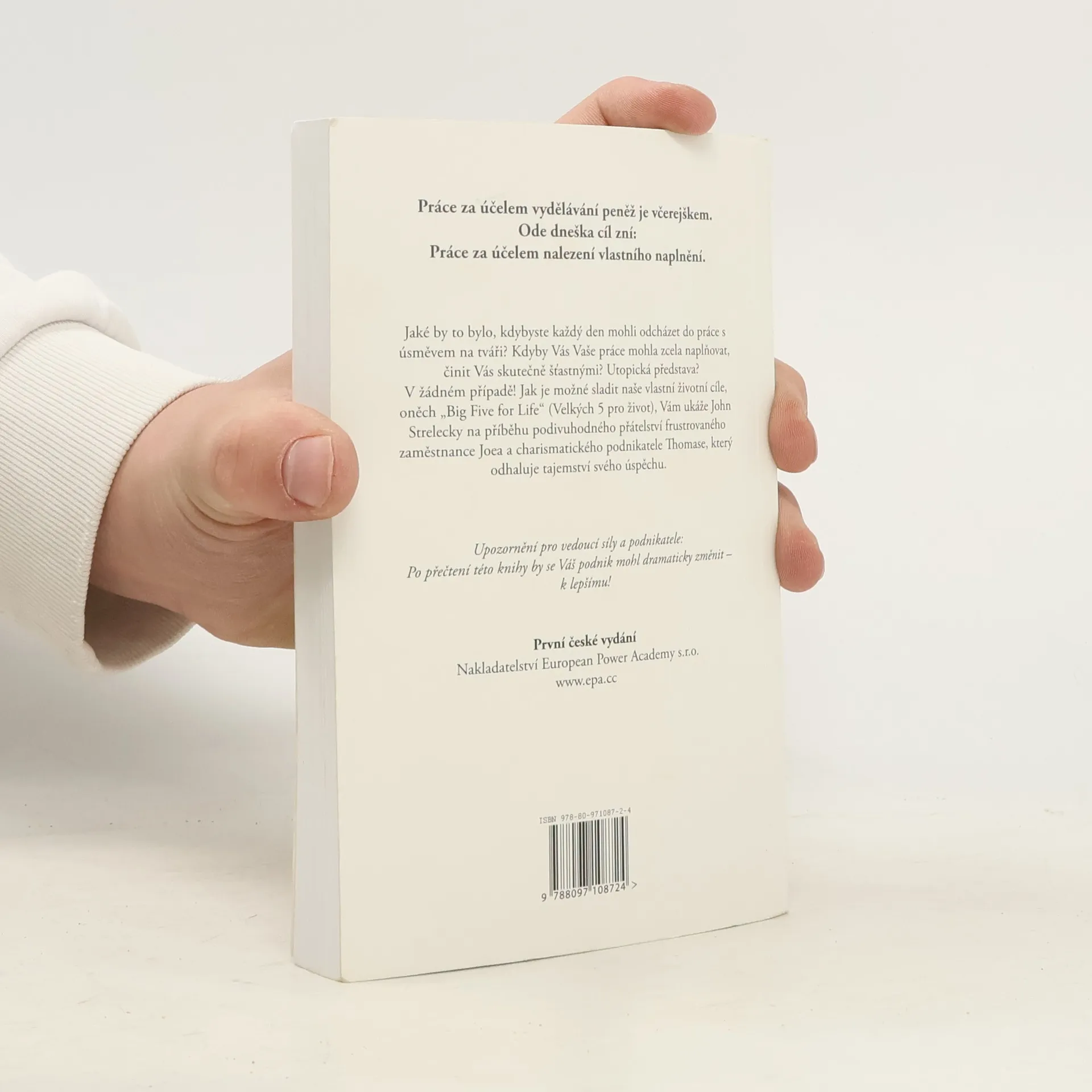 Jaké by to bylo, kdybyste každý den mohli odcházet do práce s úsměvem na tváři? Kdyby Vás Vaše práce mohla zcela naplňovat, činit skutečně šťastnými? Útopická představa? V žádném případě! Jak je možné sladit naše živnotní cíle, oněch "Big Five for Live", Vám ukaže příběh charismatického podnikatele Thomase, který se dozví, že má před sebou jen pár týdnů života a jeho přítele, frustrovaného zaměstnance, Joea, kterému postupně odhaluje tajemství svého úspěchu.