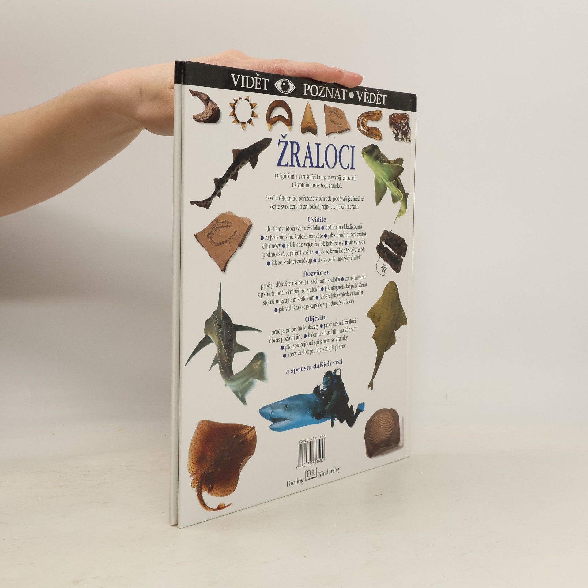 Přehledný průvodce říší žraloků. Přibližuje tajemství jejich vývoje a chování, vysvětluje, proč útočí a proč je důležité žraloky chránit, popisuje, jak se tito velcí obratlovci měří, značkují, jak je lidé loví a zužitkovávají jednotlivé části jejich těla.