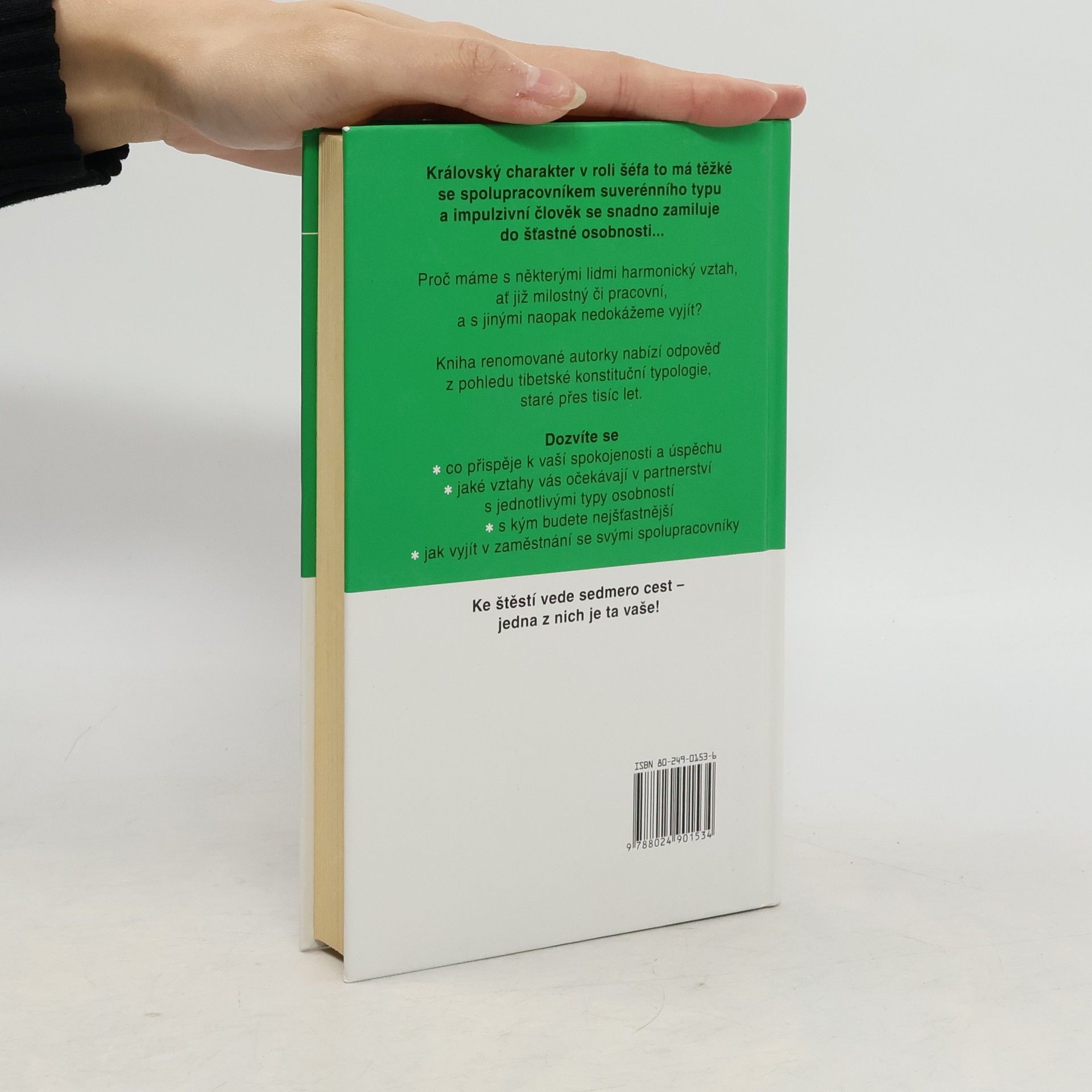 Královský charakter v roli šéfa to má těžké se spolupracovníkem suverénního typu a impulzivní člověk se snadno zamiluje do šťastné osobnosti... Proč máme s některými lidmi harmonický vztah, ať již milostný či pracovní, a s jinými zase nedokážeme vyjít? Kniha renomované autorky nabízí odpověď z pohledu tibetské konstituční typologie, staré přes tisíc let. Dozvíte se - co přispěje k vaší spokojenosti a úspěchu - jaké vztahy vás očekávají v partnerství s jednotlivými typy osobností, - s kým budete nejšťastnější - jak vyjít v zaměstnání se svými spolupracovníky - jak si zvýšit sebevědomí a rozvíjet se Ke štěstí vede sedmero cest - jedna z nich je ta vaše!