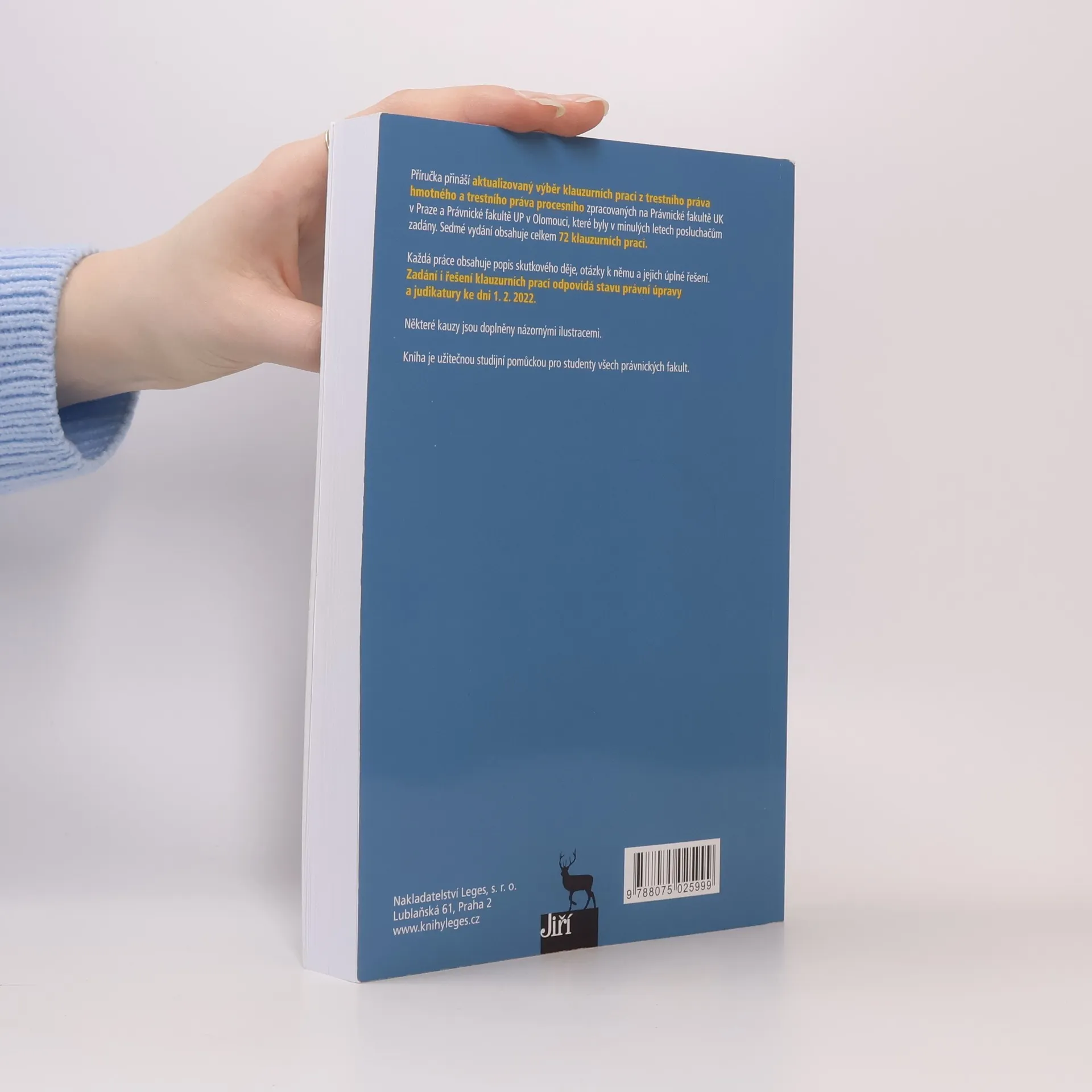 Příručka přináší aktualizovaný výběr klauzurních prací z trestního práva hmotného a trestního práva procesního zpracovaných na Právnické fakultě UK v Praze a Právnické fakultě UP v Olomouci, které byly v minulých letech posluchačům zadány. Každá práce obsahuje popis skutkového děje, otázky k němu a jejich úplné řešení. Zadání i řešení klauzurních prací odpovídá právnímu stavu ke dni 1. 1. 2010. Čtvrté vydání obsahuje celkem 40 klauzurních prací. Kniha je užitečnou studijní pomůckou pro studenty všech právnických fakult.
