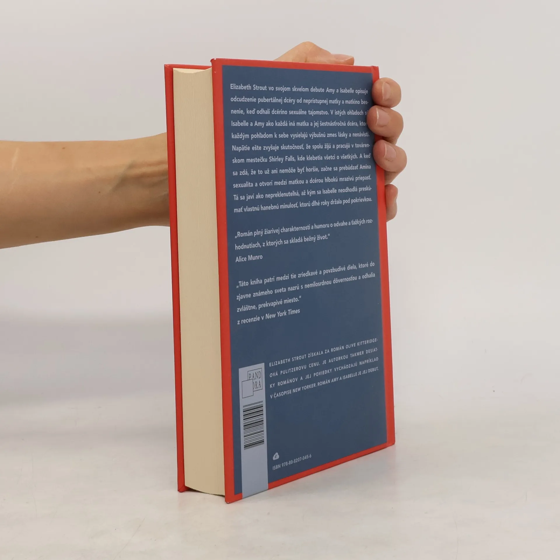Elizabeth Strout vo svojom skvelom debute Amy a Isabelle opisuje odcudzenie pubertálnej dcéry od neprístupnej matky a matkino besnenie, keď odhalí dcérino sexuálne tajomstvo. V istých ohľadoch sú Isabelle a Amy ako každá iná matka a jej šestnásťročná dcéra, ktoré každým pohľadom k sebe vysielajú výbušnú zmes lásky a nenávisti. Napätie ešte zvyšuje skutočnosť, že spolu žijú a pracujú v továrenskom mestečku Shirley Falls, kde klebetia všetci o všetkých. A keď sa zdá, že to už ani nemôže byť horšie, začne sa prebúdzať Amina sexualita a otvorí medzi matkou a dcérou hlbokú mrazivú priepasť. Tá sa javí ako nepreklenuteľná, až kým sa Isabelle neodhodlá preskúmať vlastnú hanebnú minulosť, ktorú dlhé roky držala pod pokrievkou.