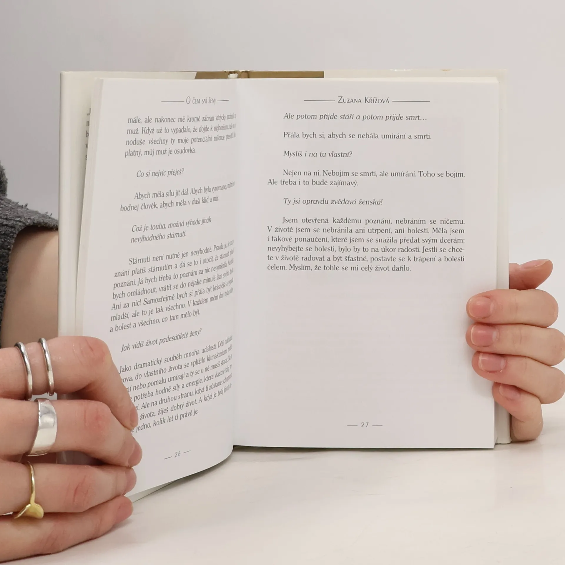 Tato knížka není pouhým přepisem úspěšného dokumentu O čem sní ženy, který byl natočen v roce 1999 pro Českou televizi ve filmové společnosti FEBIO. Je záznamem celých rozhovorů z natáčení, z nichž byla do filmu zakomponována jenom část. Autorka poprvé vstupuje na literární pole s dokumentárním textem, ale bez nástrojů své profese - obrazu, zvuku, střihu a hudby. A opět s invencí, pochopením a láskou. výsledkem jsou autentické - někdy dojemné, jindy drsné příběhy žen, které otevřeně svěřují svůj intimní životní příběh. V každém sděleném osudu (včetně osudu autorky) můžeme rozpoznat vlastní prožitou zkušenost, objevit sounáležitost s jinými lidskými příběhy a dobrat se v osobní katarzi k dalšímu poznání sebe sama.