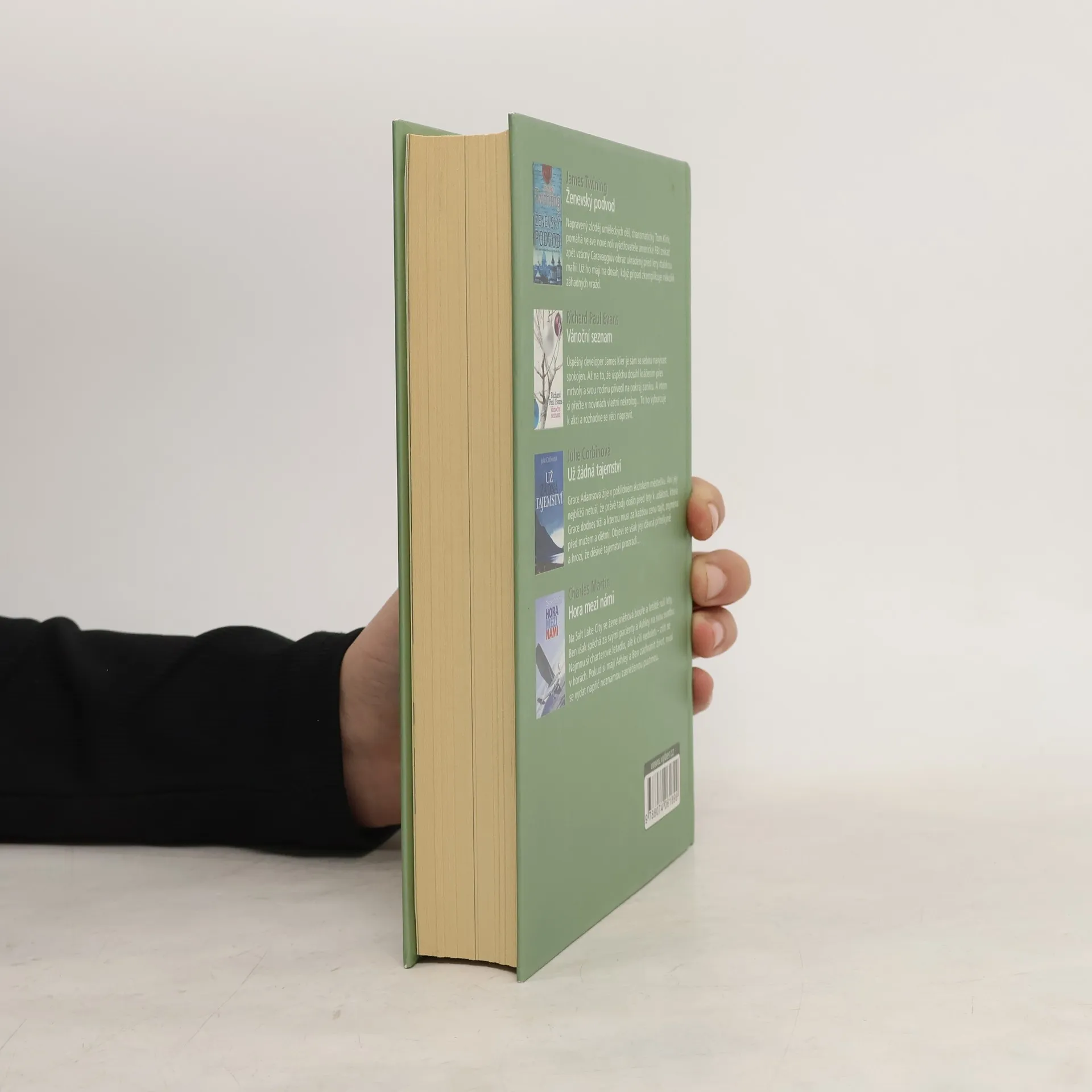 1) James Twining: Ženevský podvod - Napravený zloděj uměleckých děl, charismatický Tom Kirk, pomáhá ve své nové roli vyšetřovatele americké FBI získat zpět vzácný Caravaggiův obraz ukradený před lety italskou mafií. Už ho mají na dosah, když případ zkomplikuje několik záhadných vražd. 2) Richard Paul Evans: Vánoční seznam - Úspěšný developer James Kier je sám se sebou navýsost spokojen. Až na to, že úspěchu dosáhl kráčením přes mrtvoly a svou rodinu přivedl na pokraj zániku. A vtom si přečte v novinách vlastní nekrolog... To ho vyburcuje k akci a rozhodne se věci napravit. 3) Julie Corbinová: Už žádná tajemství - Grace Adamsová žije v poklidném skotském městečku. Ani její nejbližší netuší, že právě tady došlo před lety k události, která Grace dodnes tíží a kterou musí za každou cenu tajit, zejména před mužem a dětmi. Objeví se však její dávná přítelkyně a hrozí, že děsivé tajemství prozradí… 4) Charles Martin: Hora mezi námi - Na Salt Lake City se žene sněhová bouře a letiště ruší lety, Ben však spěchá za pacienty a Ashley na svou svatbu. Najmou si malé letadlo, ale k cíli nedoletí – zřítí se v horách. Pokud si mají Ashley a Ben zachránit život, musí se vydat napříč neznámou zasněženou pustinou.