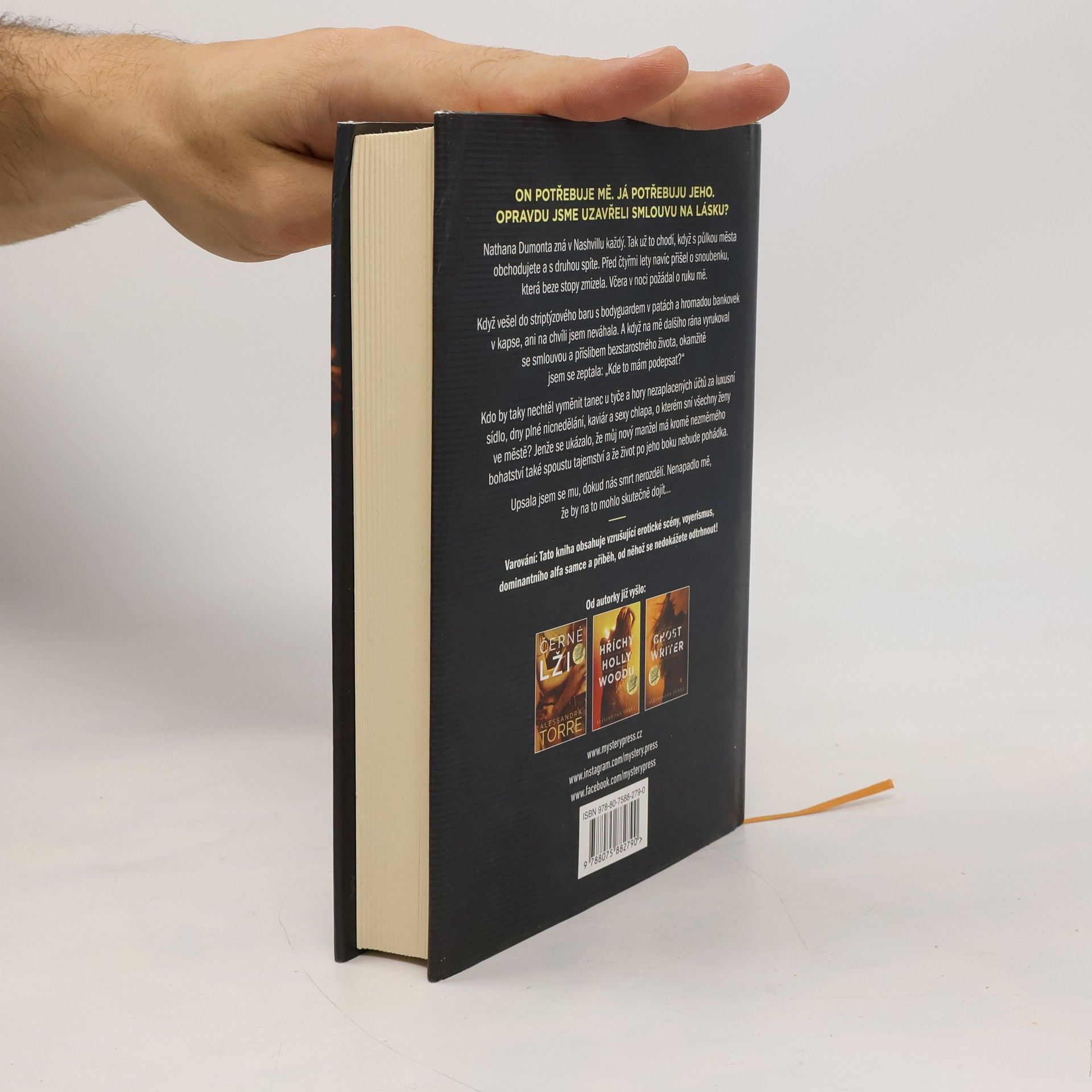 ON POTŘEBUJE MĚ. JÁ POTŘEBUJU JEHO. OPRAVDU JSME UZAVŘELI SMLOUVU NA LÁSKU? Nathana Dumonta zná v Nashvillu každý. Tak už to chodí, když s půlkou města obchodujete a s druhou spíte. Před čtyřmi lety navíc přišel o snoubenku, která beze stopy zmizela. Včera v noci požádal o ruku mě. Když vešel do striptýzového baru s bodyguardem v patách a hromadou bankovek v kapse, ani na chvíli jsem neváhala. A když na mě dalšího rána vyrukoval se smlouvou a příslibem bezstarostného života, okamžitě jsem se zeptala: „Kde to mám podepsat?“ Kdo by taky nechtěl vyměnit tanec u tyče a hory nezaplacených účtů za luxusní sídlo, dny plné nicnedělání, kaviár a sexy chlapa, o kterém sní všechny ženy ve městě? Jenže se ukázalo, že můj nový manžel má kromě nezměrného bohatství také spoustu tajemství a že život po jeho boku nebude pohádka. Upsala jsem se mu, dokud nás smrt nerozdělí. Nenapadlo mě, že by na to mohlo skutečně dojít… ___ Varování: Tato kniha obsahuje vzrušující erotické scény, voyerismus, dominantního alfa samce a příběh, od něhož se nedokážete odtrhnout!