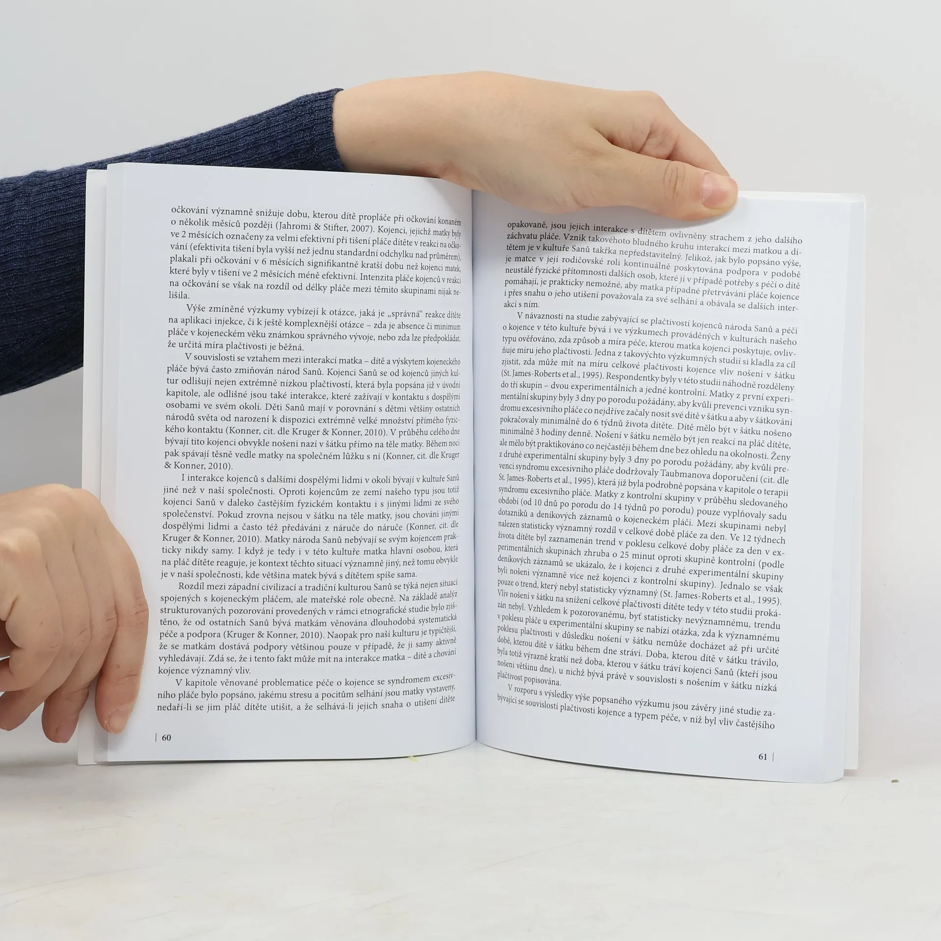 Publikace se zabývá problematikou kojeneckého pláče. Cílem studie bylo zjistit, zda je vnímání kojeneckého pláče ovlivněno psychologickými charakteristikami matky. Data od 310 žen byla získána během jejich těhotenství a po narození dítěte. Informace o charakteristikách matek byly získány ze sebeposuzovacích dotazníků během prvního sběru dat (ve třetím trimestru těhotenství). Data o kojeneckém pláči byla získána během druhého sběru dat (mezi 4. a 8. týdnem po porodu). Do druhé vlny sběru dat byla zařazena i původní metoda Videodotazník kojeneckého pláče.