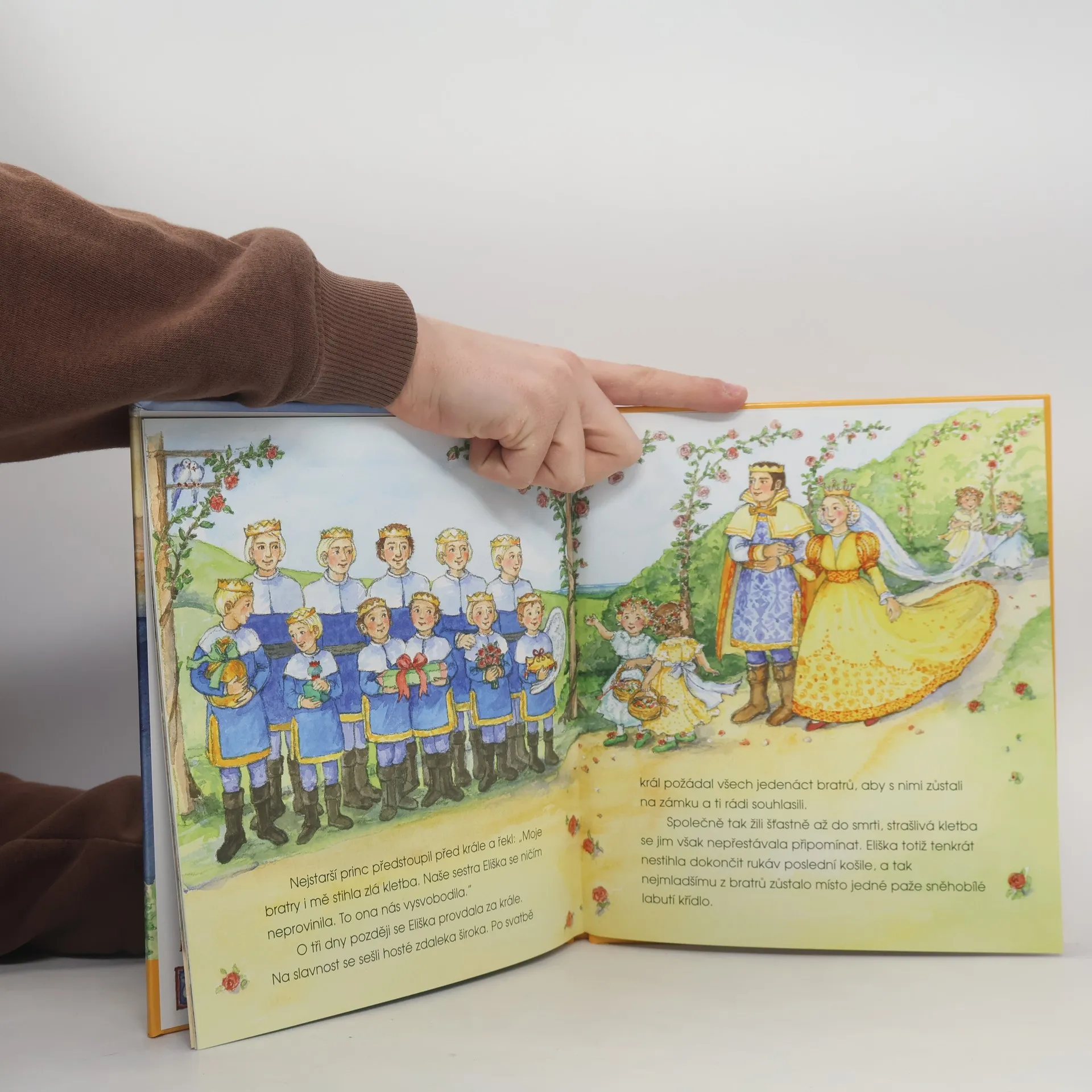 Pohádka o princezně, která díky své vytrvalosti vysvobodila jedenáct bratrů zakletých do podoby labutě. Pro nejmenší. V závěru knihy nalezneme náměty pro rodiče, jak dětem přiblížit poučení, které pohádka přináší.