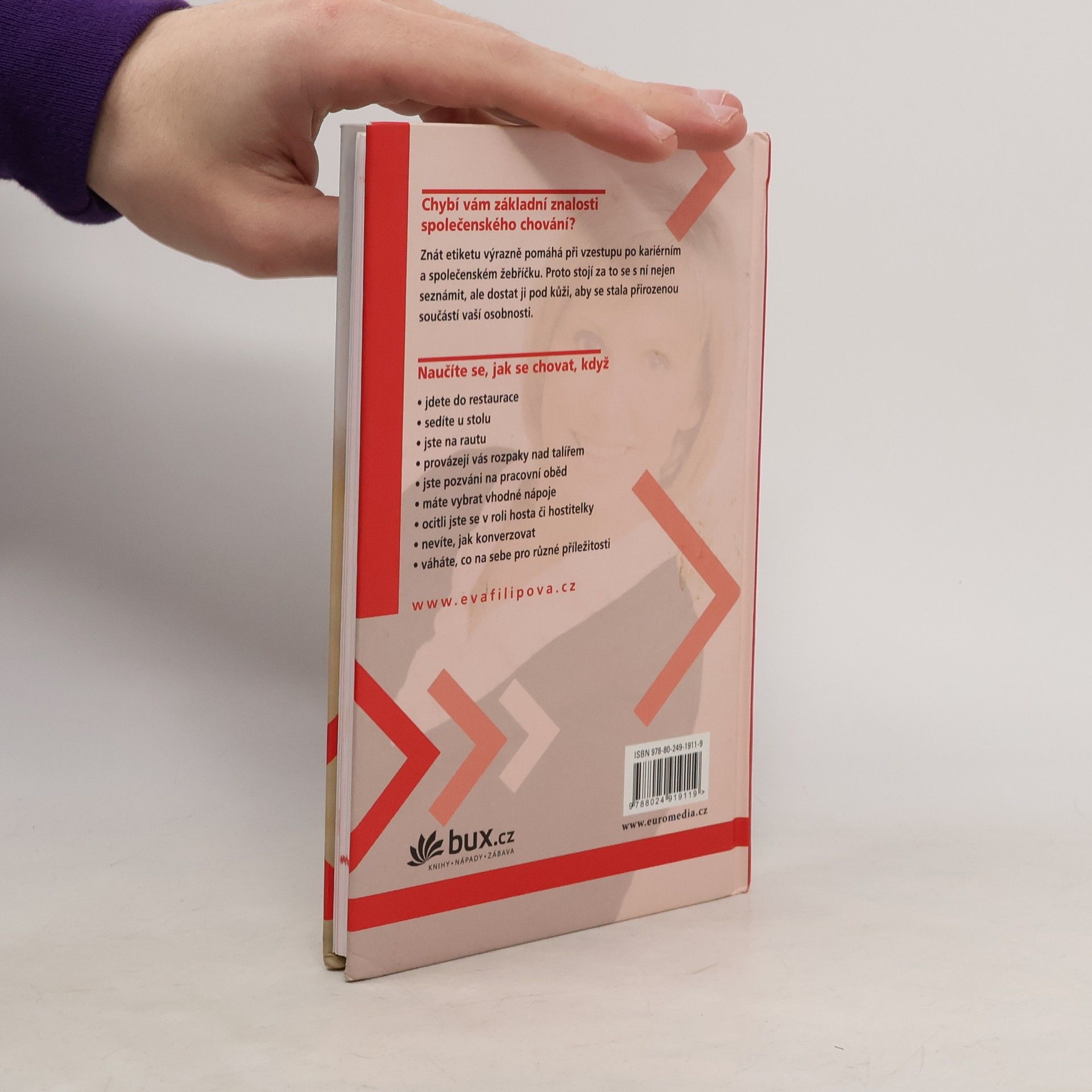 Proč se některým lidem nedaří vybočit z řady? Myslíte, že nemají štěstí? Pravděpodobně jim chybí základní znalost etikety, jež výrazně pomáhá při vzestupu po pracovním a společenském žebříčku. Proto stojí za to se s pravidly společenského chování nejen seznámit, ale dostat je pod kůži, aby se stala přirozenou součástí naší osobnosti... Hlavně neztrácejte rozum a takt. A nezapomínejte na úsměv. Dělá zázraky.