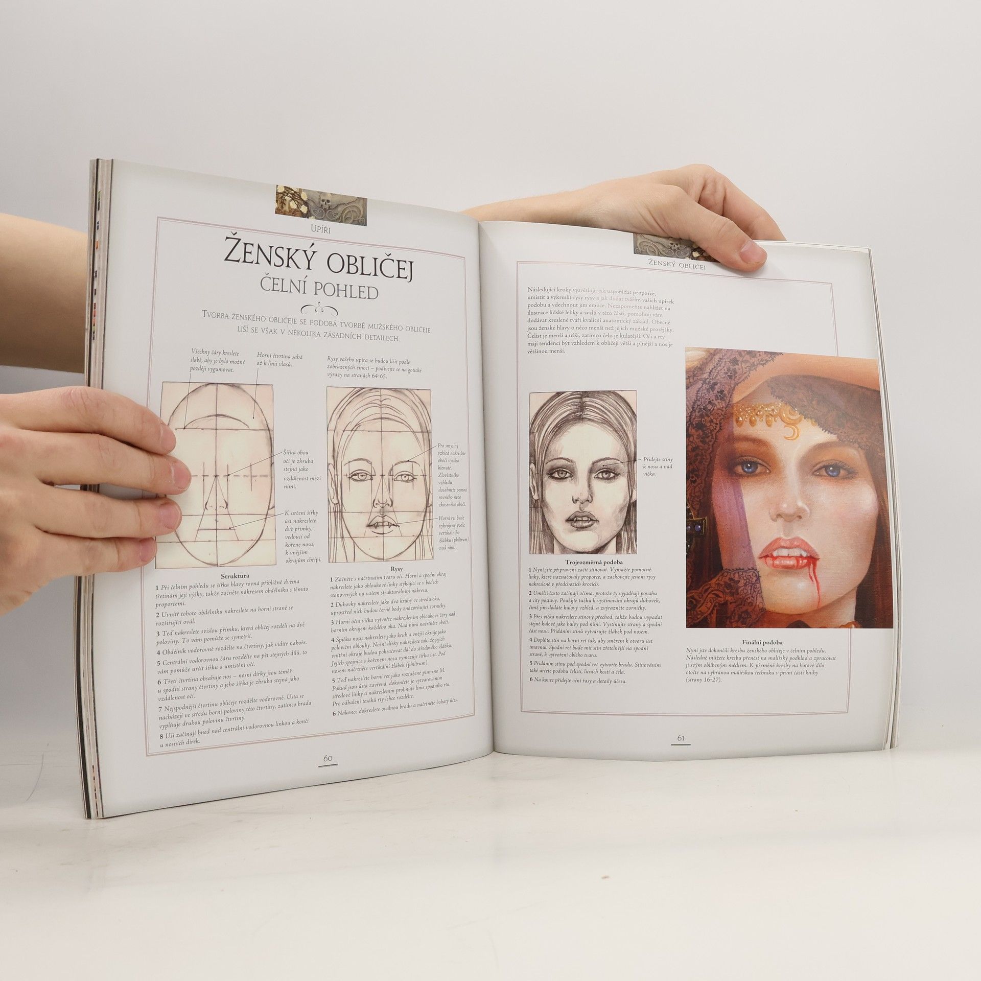 Upíři. Tajemný šlechtic zahalený v mlze, zlověstné bytosti noci, které číhají v hlubokých lesích, nebo nadpozemsky krásné ženy. Kdo by tyto postavy neznal, kdo o nich nečetl nebo nikdy neviděl žádný film s tímto nebezpečným a podmanivým stvořením temnot? Upíři jsou velmi populární téma pro všechny zájemce o fantasy umění. Tato kniha navazuje na řadu oblíbených publikací, které v edici Naučte se kreslit... již vyšly. Kreslení upírů doplňuje nabídku knih na podobné téma - kreslení nemrtvých nebo kreslení postav ze světa hrůzy a temné magie. Tyto publikace si získaly velkou oblibu jak mezi mládeží, tak i mezi dospělými čtenáři, kteří velmi pozitivně hodnotí jednoduché postupy uvedené v knihách. S touto knihou se můžete naučit také kreslit a přenést tak svoje nejtajnější fantazie na papír. Ať už jste začátečník nebo pokročilý výtvarník, s pomocí knihy Iana Danielse dokážete stvořit působivé obrazy upírů, jejich obětí i dalších prvků fantastického světa nemrtvých. Najdete zde nejrůznější umělecké techniky spolu s podrobně popsanými postupy, stejně jako tipy a triky, které vaše dovednosti ještě umocní. Dozvíte se, kde a jak čerpat inspiraci, jak využít svou představivost nebo okolní svět. V galerii upírů a dalších gotických stvoření pak naleznete ukázky, ze kterých můžete při své umělecké tvorbě vycházet. Kniha je psaná jednoduchým a přitom poutavým stylem. Báječně temný svět upírů čeká jen na to, až do něj vkročíte!