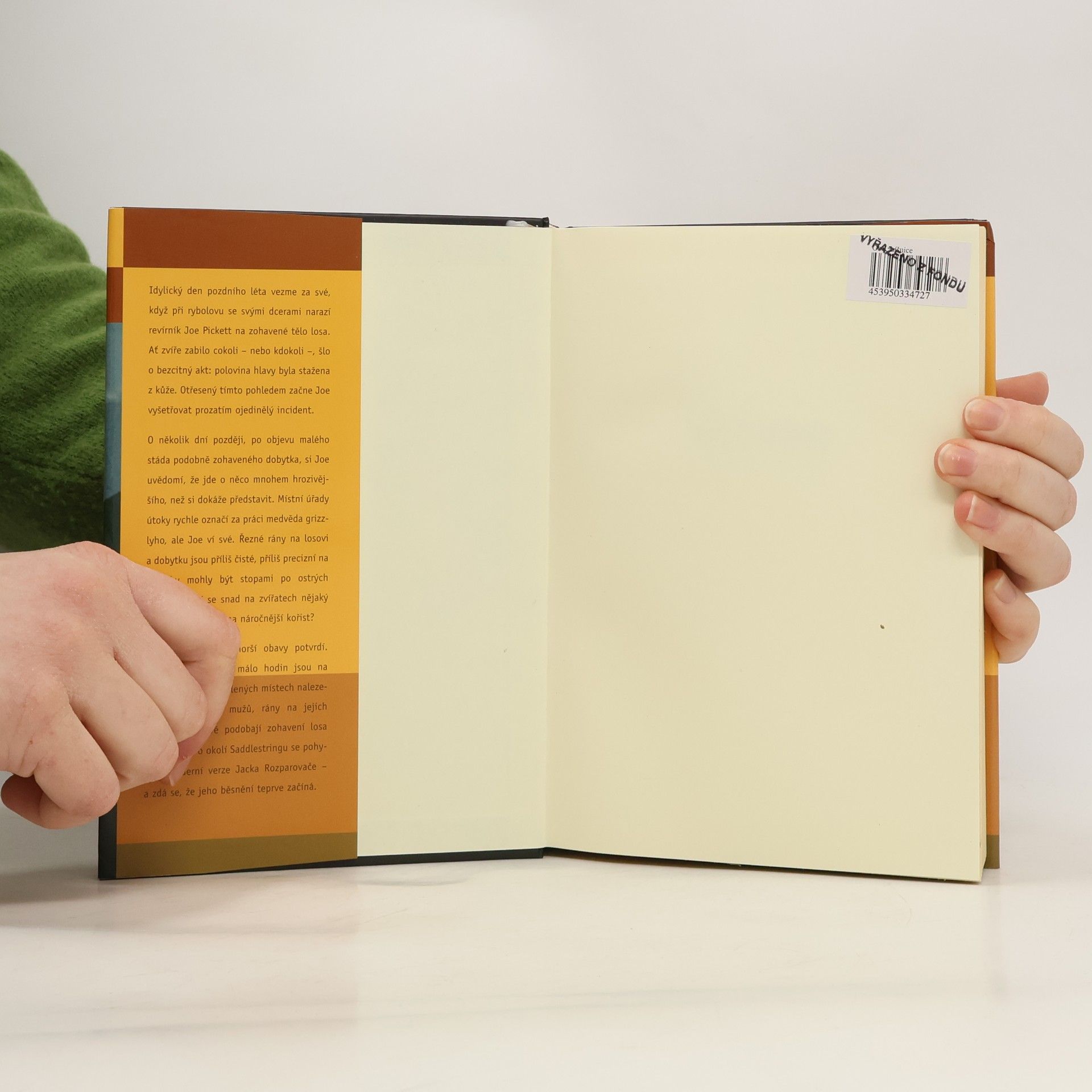 Jednoho klidného podzimního dne objeví Joe Pickett při rybolovu surově ubitého, zvláštním způsobem zohaveného losa a začne pátrat po pachateli zdánlivě nesmyslného pytláckého činu. Když za čas najde malé stádo podobně usmrceného dobytka, začne se obávat, že kdosi neznámý používá zvířata na zdokonalení vražedné metody a brzy dojde k vraždám lidí: a skutečně, brzy jsou nalezeny mrtvoly stejně zohavených mužů. Úřady útoky považují za dílo medvěda, Joe však příliš dlouho žije v přírodě a ví, že záhada je dílem člověka, nebo neznámé nadpřirozené síly. Umíněně se snaží záhadu rozřešit a stane se tak uprostřed nádherné divoké přírody nechtěným svědkem střetnutí sil dobra a zla, které nepocházejí z tohoto světa Román s tajuplnou zápletkou od amerického autora se odehrává ve Wyomingu a je součástí pětidílného volného cyklu s postavou svérázného revírníka Joe Picketta