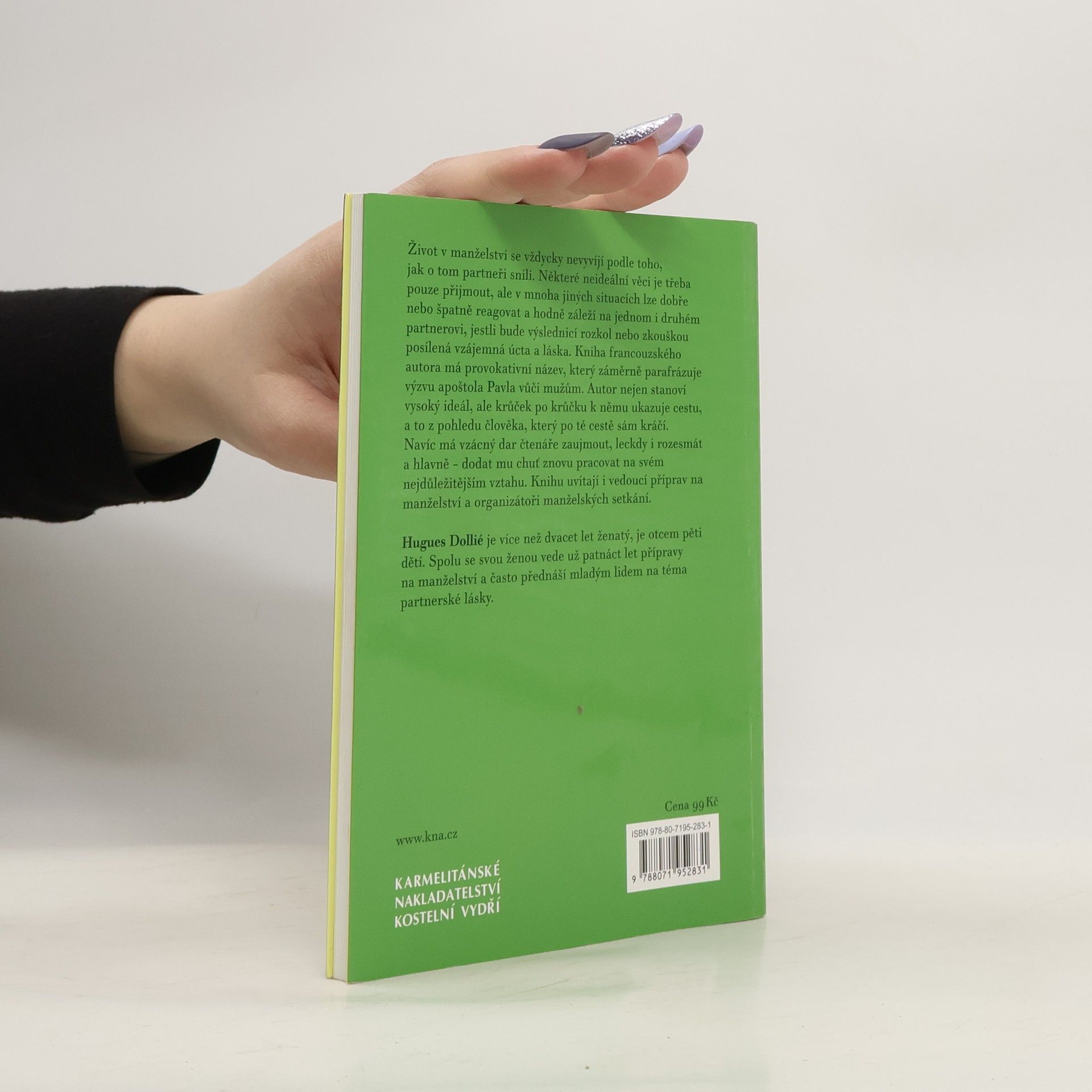 Život v manželství se vždycky nevyvíjí podle toho, jak o tom partneři snili. Některé neideální věci je třeba pouze přijmout, ale v mnoha jiných situacích lze dobře nebo špatně reagovat a hodně záleží na jednom i druhém partnerovi, jestli bude výslednicí rozkol nebo zkouškou posílená vzájemná úcta a láska. Kniha francouzského autora má provokativní název, který záměrně parafrázuje výzvu apoštola Pavla vůči mužům. Autor nejen stanoví vysoký ideál, ale krůček po krůčku k němu ukazuje cestu, a to z pohledu člověka, který po té cestě sám kráčí. Navíc má vzácný dar čtenáře zaujmout, leckdy i rozesmát a hlavně – dodat mu chuť znovu pracovat na svém nejdůležitějším vztahu. Knihu uvítají i vedoucí příprav na manželství a organizátoři manželských setkání.