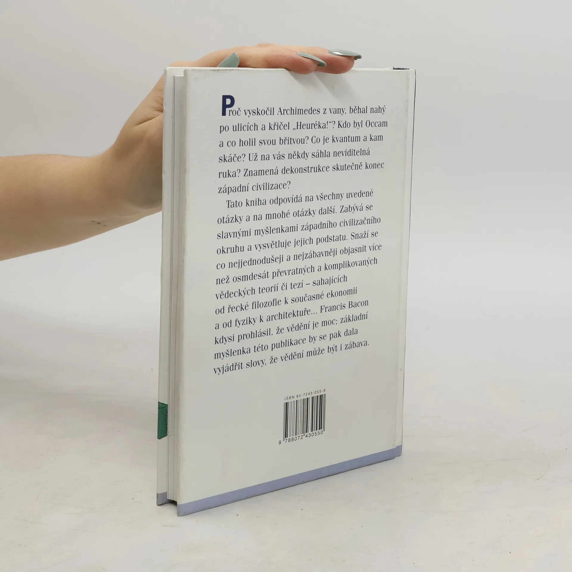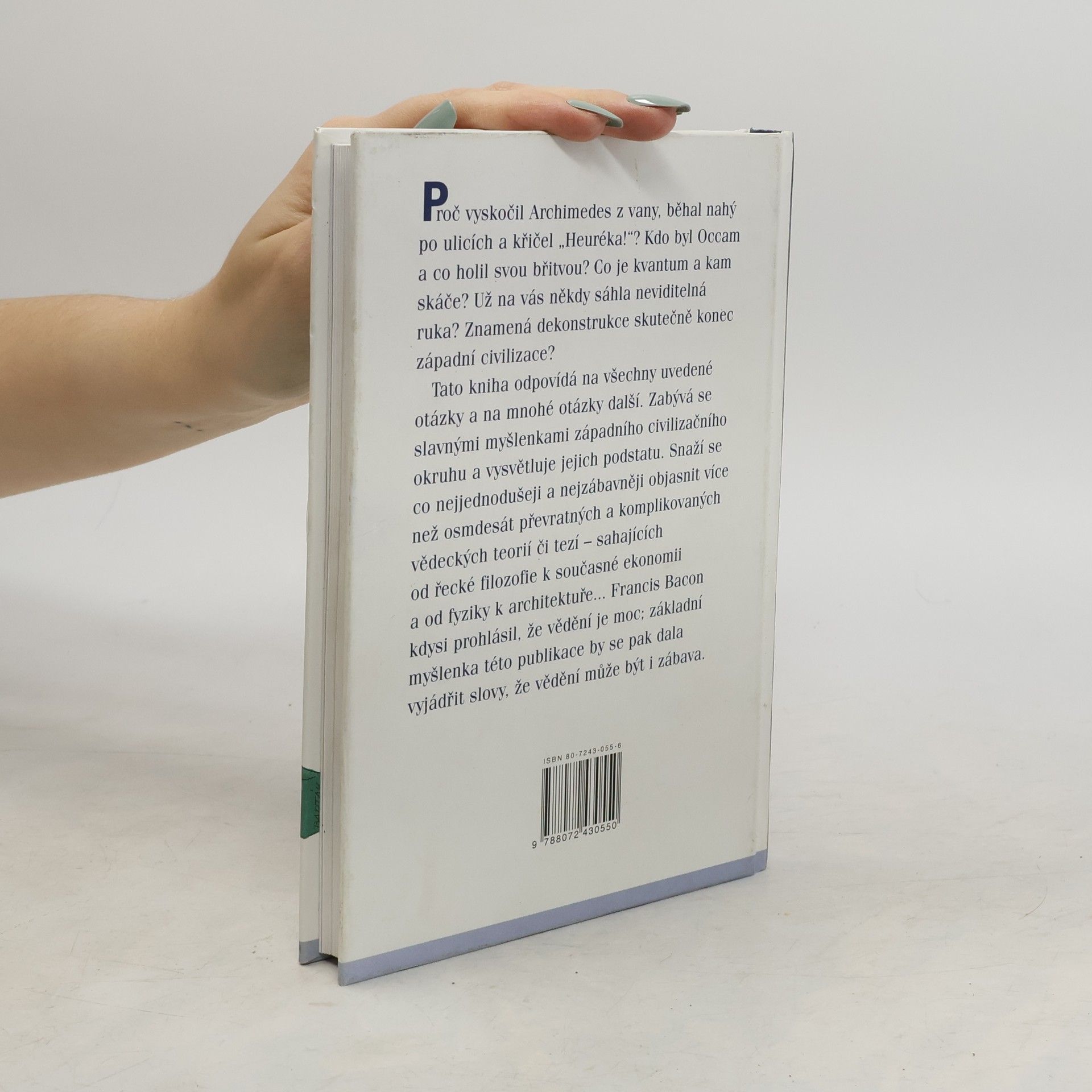 Proč vyskočil Archimedes z vany, běhal nahý po ulicích a křičel "Heuréka!" ? Co je kvantum a kam skáče? Už na vás někdy sáhla neviditelná ruka? Znamená dekonstrukce skutečně konec západní civilizace? Tato kniha odpovídá na všechny uvedené otázky a na mnohé další. Zabývá se slavnými myšlenkami západního civilizačního okruhu a vysvětluje jejich podstatu. Snaží se co nejjednodušeji a nejzábavněji objasnit více než osmdesát převratných a komplikovaných vědeckých teorií či tezí - sahajících od řecké filozofie k současné ekonomii a od fyziky k architektuře...Francis Bacon kdysi prohlásil, že vědění je moc; základní myšlenka této publikace by se pak dala vyjádřit slovy, že vědění může být i zábava.