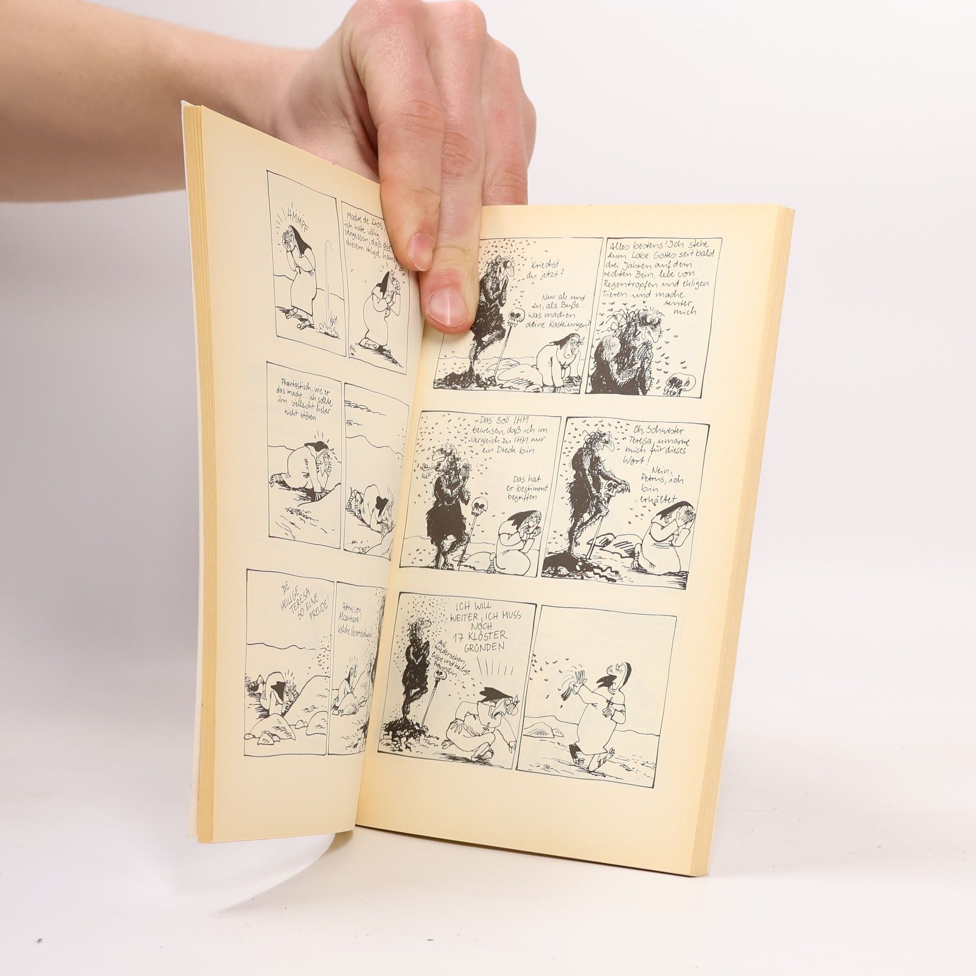 Claire Bretecher, bekannt für ihre scharfe Beobachtung der 'Frustierten', widmet sich nun der Chronik von Teresa von Avila, der spanischen Mystikerin des 16. Jahrhunderts. Mit Witz und Freude bringt sie das Leben dieser Heiligen in Comics, was eine humorvolle Verbindung zwischen Frauen über die Jahrhunderte schafft.