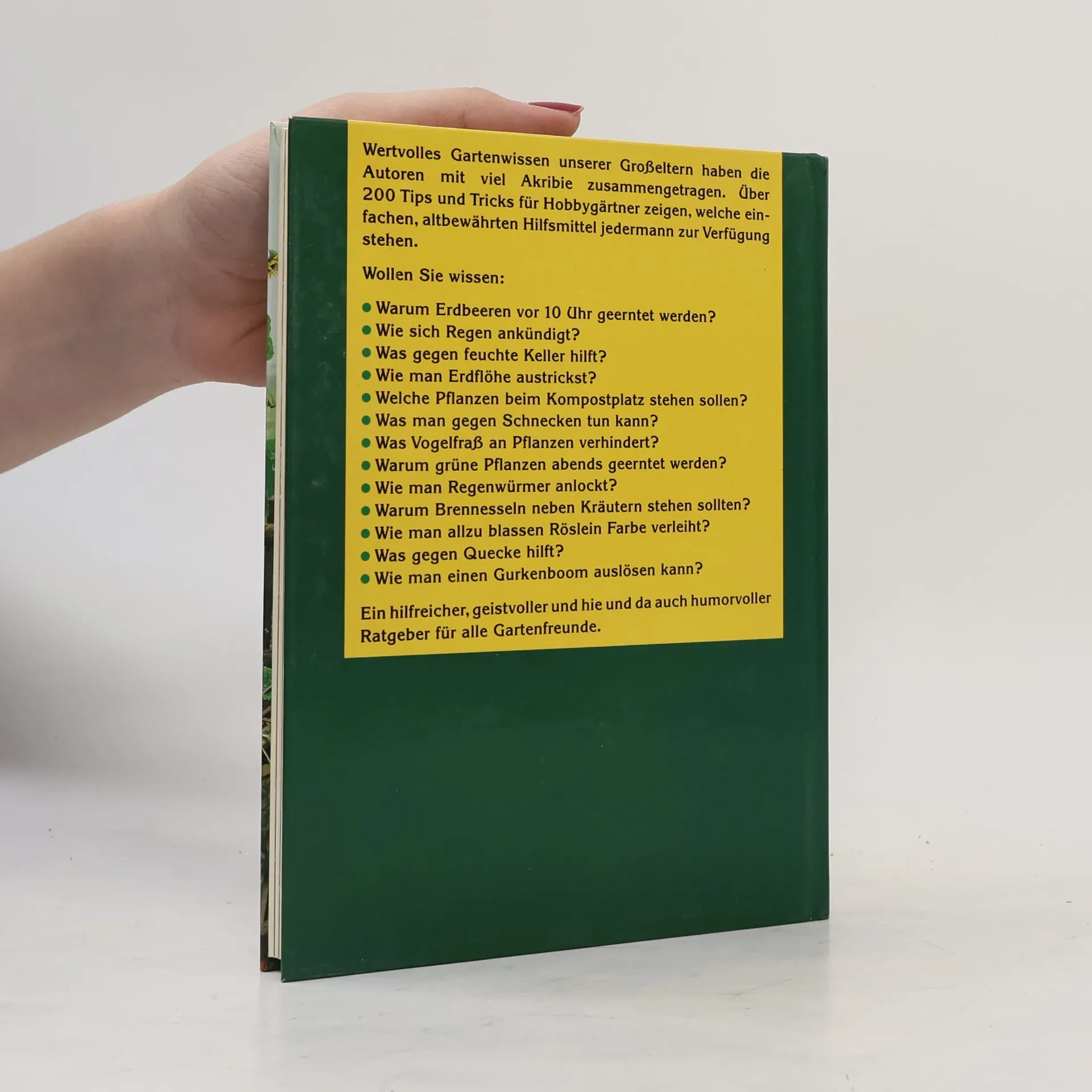 Kennen Sie den Menüplan unserer Regenwürmer? Wissen Sie, wie man Saatgut auf die Probe stellt? Können Sie sich vorstellen, wie man Dünger einfach aus der Luft greift? Warum Sie keine Angst vor Hexenringen haben sollten? Großvater nimmt Sie mit in seinen Garten und lässt Sie an seinen Gärtner-Geheimnissen teilhaben. Ein humorvoller und praktischer Ratgeber mit über 250 Tipps.