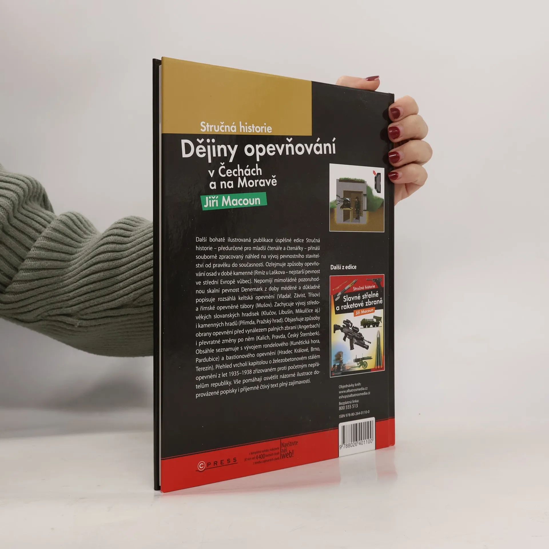 Další bohatě ilustrovaná publikace úspěšné edice Stručná historie – předurčené pro mladší čtenáře a čtenářky – přináší souborně zpracovaný náhled na vývoj pevnostního stavitelství od pravěku do současnosti. Ozřejmuje způsoby opevňování osad v době kamenné (Rmíz u Laškova – nejstarší pevnost ve střední Evropě vůbec). Nepomíjí mimořádně pozoruhodnou skalní pevnost Denemark z doby měděné a důkladně popisuje rozsáhlá keltská opevnění (Vladař, Závist, Třísov) a římské opevněné tábory (Mušov). Zachycuje vývoj středověkých slovanských hradisek (Klučov, Libušín, Mikulčice aj.) i kamenných hradů (Přimda, Pražský hrad). Objasňuje způsoby obrany opevnění před vynálezem palných zbraní (Angerbach) i převratné změny po něm (Kalich, Pravda, Český Šternberk). Obsáhle seznamuje s vývojem rondelového (Kunětická hora, Pardubice) a bastionového opevnění (Hradec Králové, Brno, Terezín). Přehled vrcholí kapitolou o železobetonovém stálém opevnění z let 1935–1938 zřizovaném proti početným nepřátelům republiky. Vše pomáhají osvětlit názorné ilustrace doprovázené popisky i příjemně čtivý text plný zajímavostí.