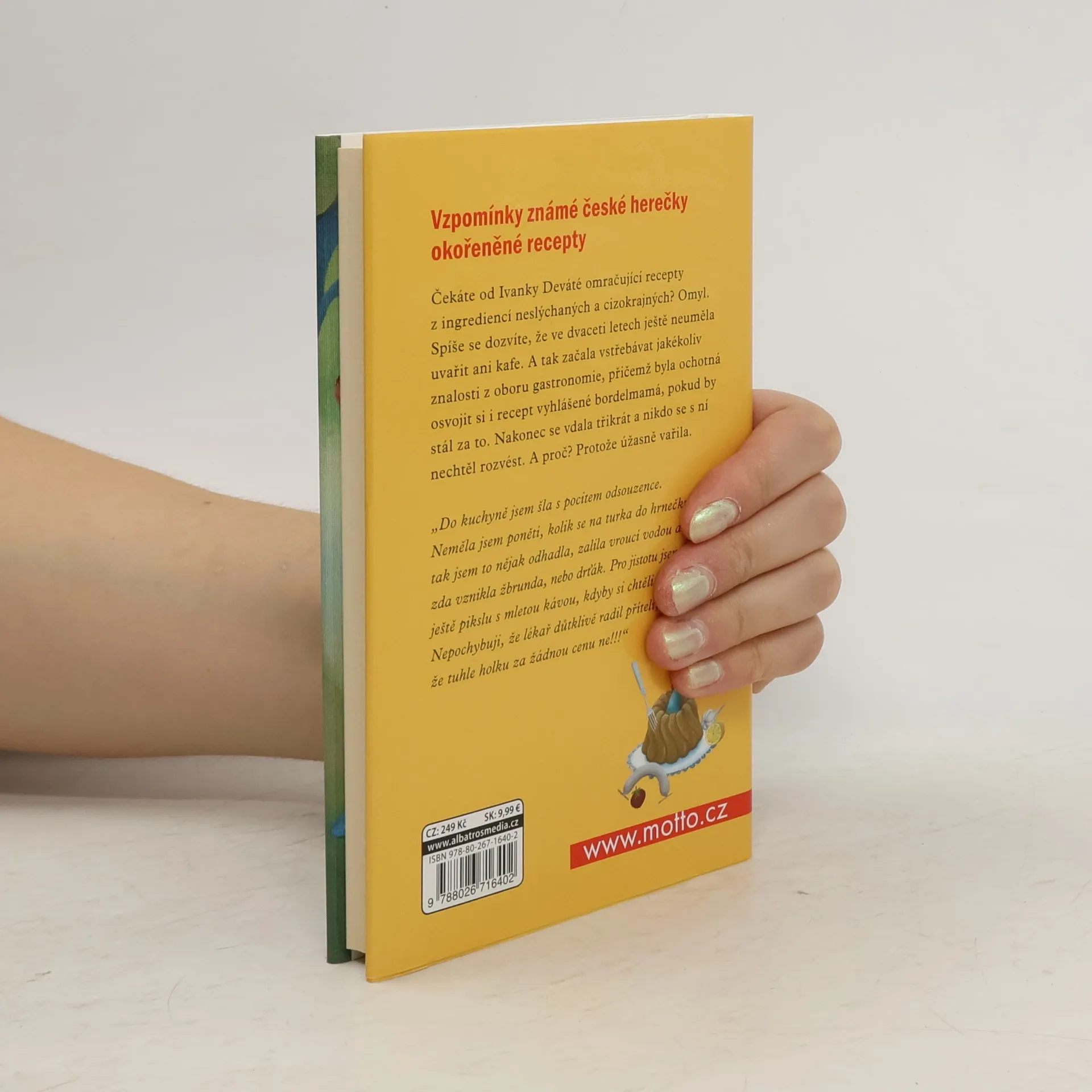Čekáte od Ivanky Deváté omračující recepty z ingrediencí neslýchaných a cizokrajných? Omyl. Spíše se dozvíte, že ve dvaceti letech ještě neuměla uvařit ani kafe a jaké to bylo dobrodružství. A tak začala vstřebávat jakékoliv znalosti z oboru gastronomie, přičemž byla ochotná osvojit si recept i vyhlášené bordelmamá, pokud by stál za to. A hle, přesto se vdala třikrát a nikdo se s ní nechtěl rozvést. A proč? Protože úžasně vařila.