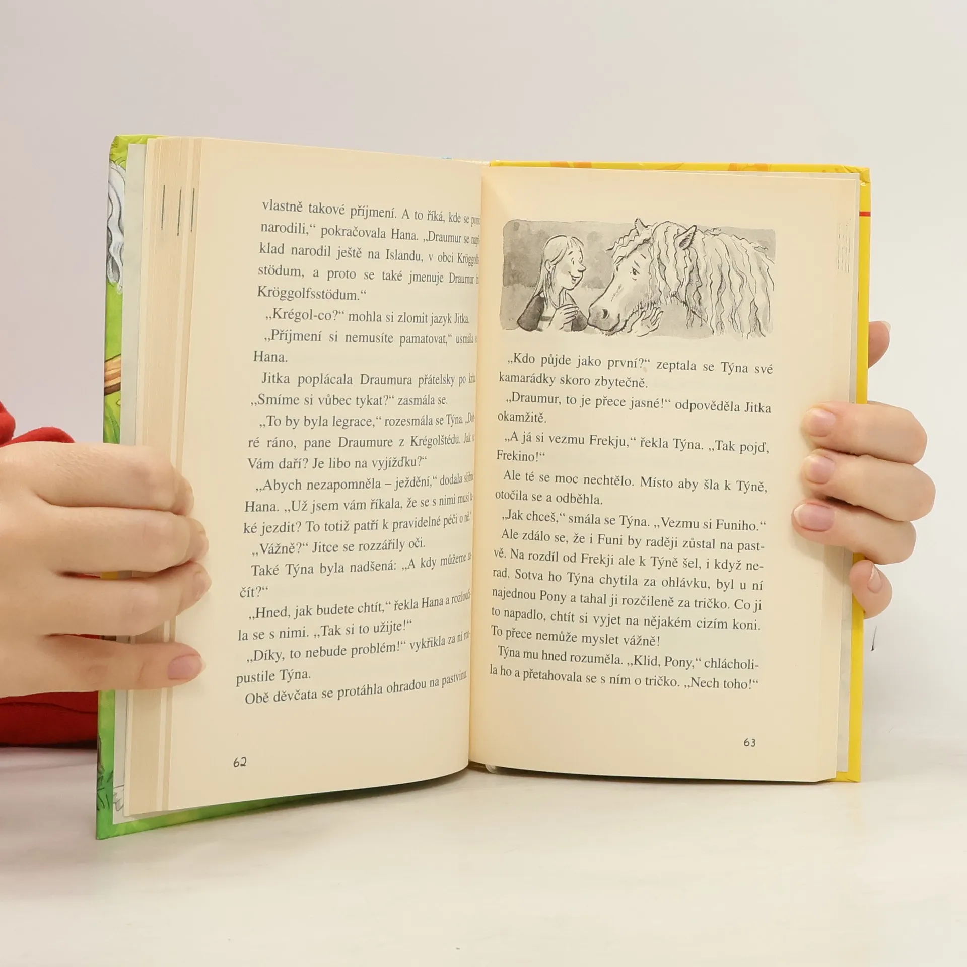 Páté pokračování příběhů Týny a jejího poníka Ponyho, tentokrát o kamarádce Jitce a její lásce k islandskému koni Draumurovi. Pro mladší děti. Týnina kamarádka Jitka touží mít také svého vlastního poníka. Týna přijde s nápadem, že by si mohli na nového poníka vydělat nějaké peníze. Po malých výdělcích za úklid kůlny a po nezdařeném pokusu vozit na staré drožce se zapřaženým Ponym turisty, přišla konečně ohromná příležitost. Jitka s Týnou se mají starat o čtyři chundelaté koně, kteří pocházejí z Islandu a jsou ve zdejším kraji na ozdravné dovolené. A to je pro Týnu a Jitku přece ta nejlepší brigáda na světě. Jitka si zvlášť oblíbí grošovaného koně s vlnitou hřívou jménem Draumur. Když se ale mají koně vrátit zpět na Island ke svému majiteli, nemůže se Jitka se svým milovaným grošákem rozloučit.... celý text