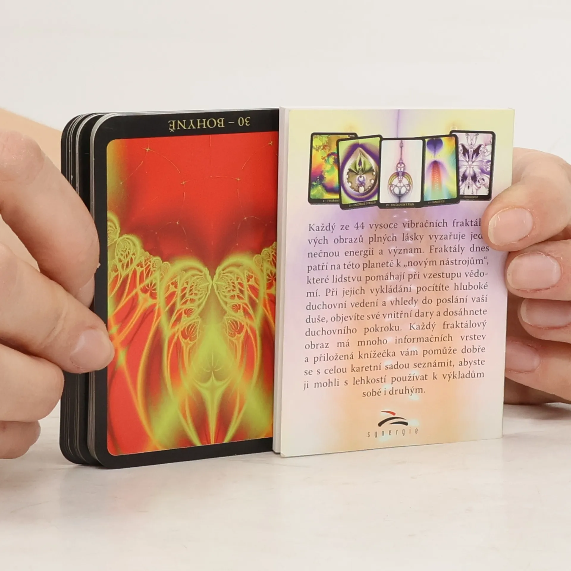KARTY OSUDU. Každý ze 44 vysoce vibračních fraktálových obrazů plných lásky vyzařuje jedinečnou energii a význam. Fraktály dnes patří na této planetě k „novým nástrojům“, které lidstvu pomáhají při vzestupu vědomí. Při jejich vykládání pocítíte hluboké duchovní vedení a vhledy do poslání vaší duše, objevíte své vnitřní dary a dosáhnete duchovního pokroku. Každý fraktálový obraz má mnoho informačních vrstev a přiložená knížečka vám pomůže dobře se s celou karetní sadou seznámit, abyste ji mohli s lehkostí používat k výkladům sobě i druhým.