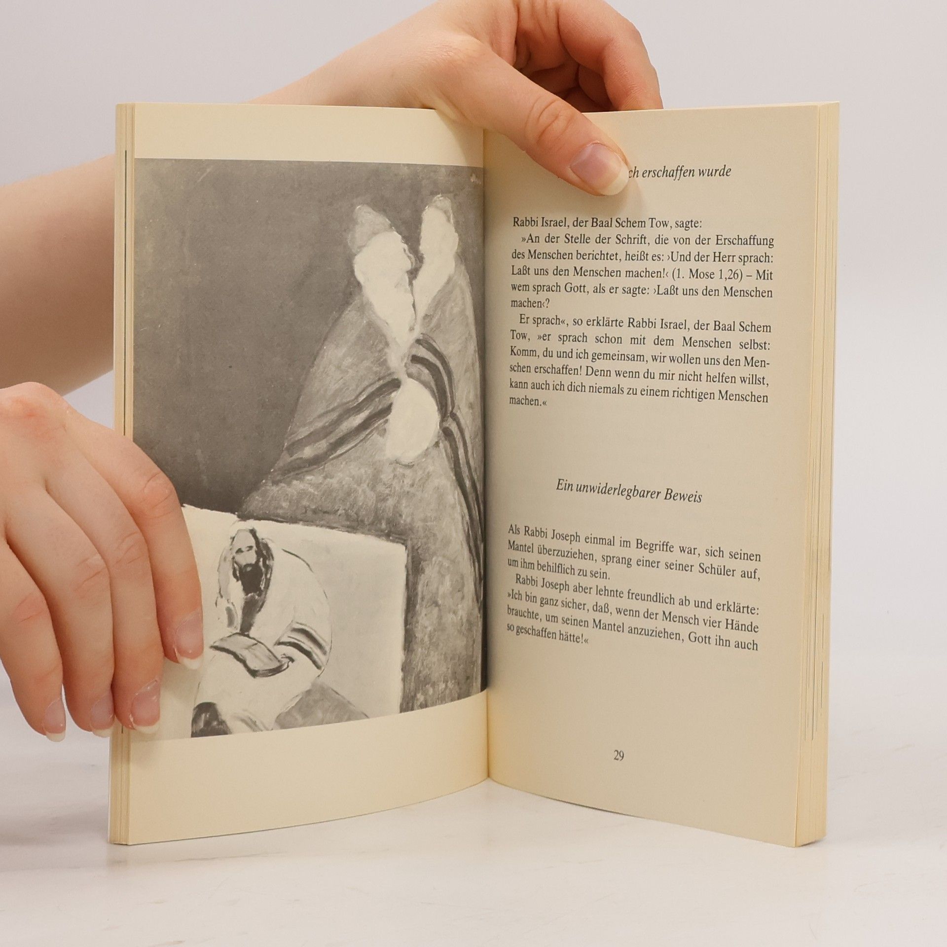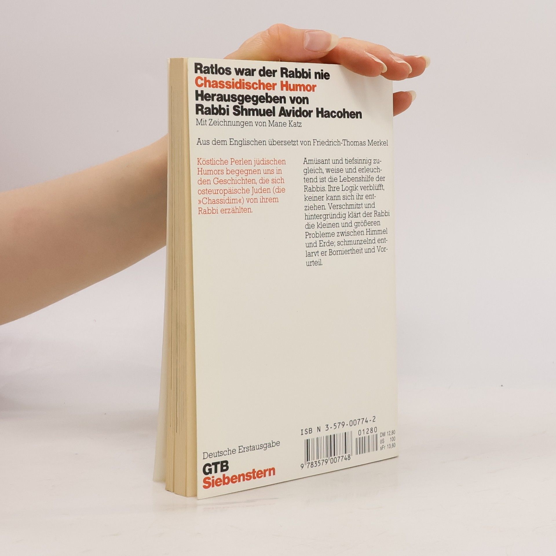 „ Köstliche Perlen jüdischen Humors begegnen uns in den Geschichten, die sich osteuropäische Juden (die “Chassidim„) von ihrem Rabbi erzählten. Amüsant und tiefsinnig zugleich, weise und erleuchtend ist die Lebenshilfe der Rabbis. Ihre Logik verblüfft, keiner kann sich ihr entziehen. Verschmitzt und hintergründig klärt der Rabbi die kleinen und größeren Probleme zwischen Himmel und Erde; schmunzelnd entlarvt er Borniertheit und Vorurteil. Aus dem Englischen übersetzt von Friedrich-Thomas Merke.“
