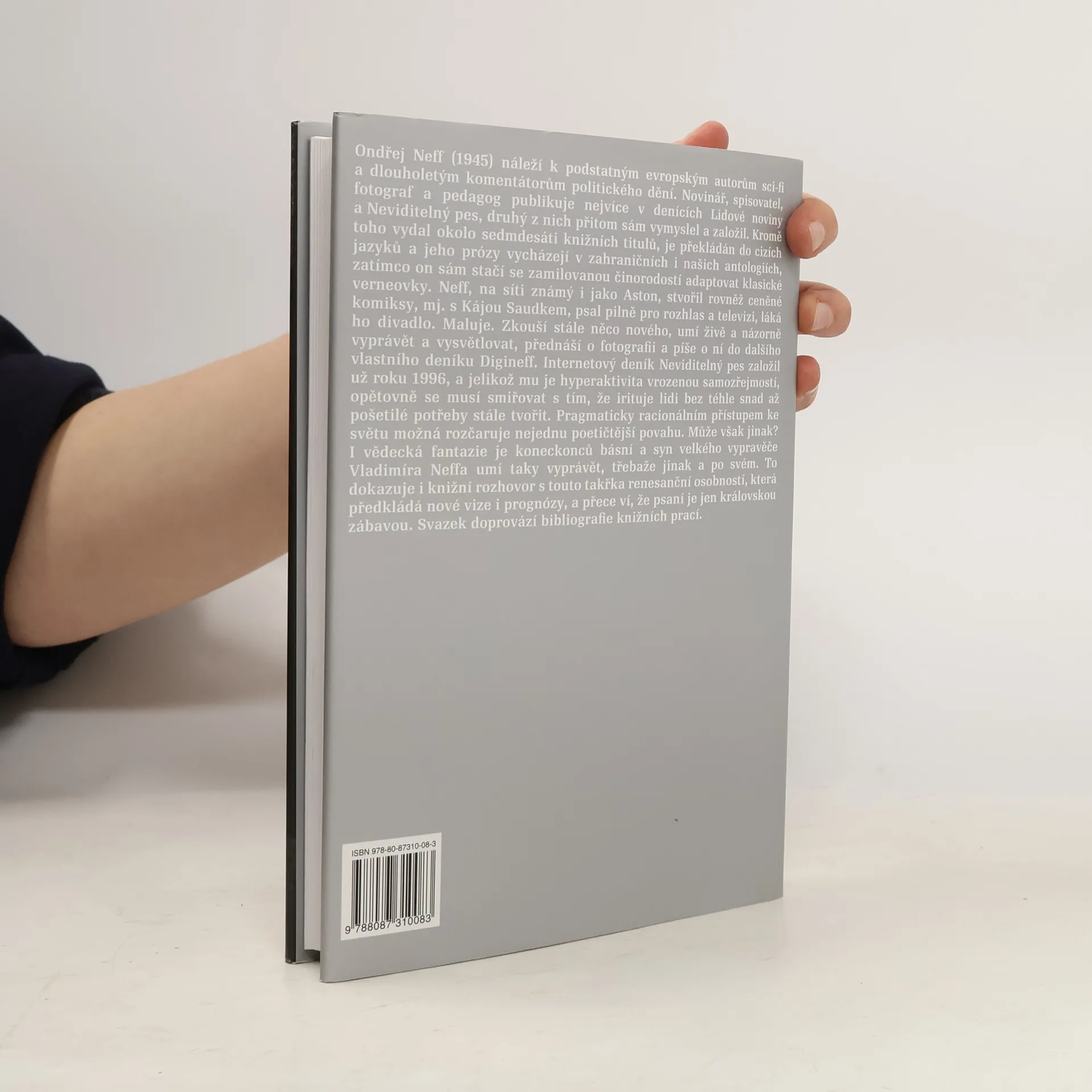 Ondřej Neff (1945) náleží k podstatným evropským autorům sci-fi a přes dvacet let komentuje politiku. Novinář, spisovatel, fotograf a pedagog publikuje nejvíce v denících Lidové noviny a Neviditelný pes, druhý z nichž sám vymyslel a založil. Krom toho vydal okolo sedmdesáti knižních titulů, je překládán do cizích jazyků a jeho prózy vycházejí v zahraničních i našich antologiích, zatímco on sám stačí se zamilovanou činorodostí adaptovat klasické verneovky. Neff, známý na síti i jako Aston, stvořil rovněž ceněné komiksy, mj. s Kájou Saudkem, psal pilně pro rozhlas a televizi, láká ho divadlo. Maluje. Zkouší stále něco nového, umí živě a názorně vyprávět a vysvětlovat, přednáší o fotografii a píše o ní do dalšího vlastního deníku Digineff. Internetový deník Neviditelný pes založil už roku 1996, a jelikož mu je hyperaktivita vrozenou samozřejmostí, opětovně se musí smiřovat s tím, že irituje lidi bez téhle možná i pošetilé potřeby stále tvořit. Pragmaticky racionálním přístupem k světu možná rozčaruje nejednu poetičtější povahu. Může však jinak? I vědecká fantazie je koneckonců básní a syn velkého vypravěče Vladimíra Neffa umí taky vyprávět; jinak a po svém. To dokazuje i knižní rozhovor s touto takřka renesanční osobností, která předkládá nové vize i prognózy, a přece ví, že psaní je jen královskou zábavou. Svazek doprovází bibliografie knižních prací a životopis.