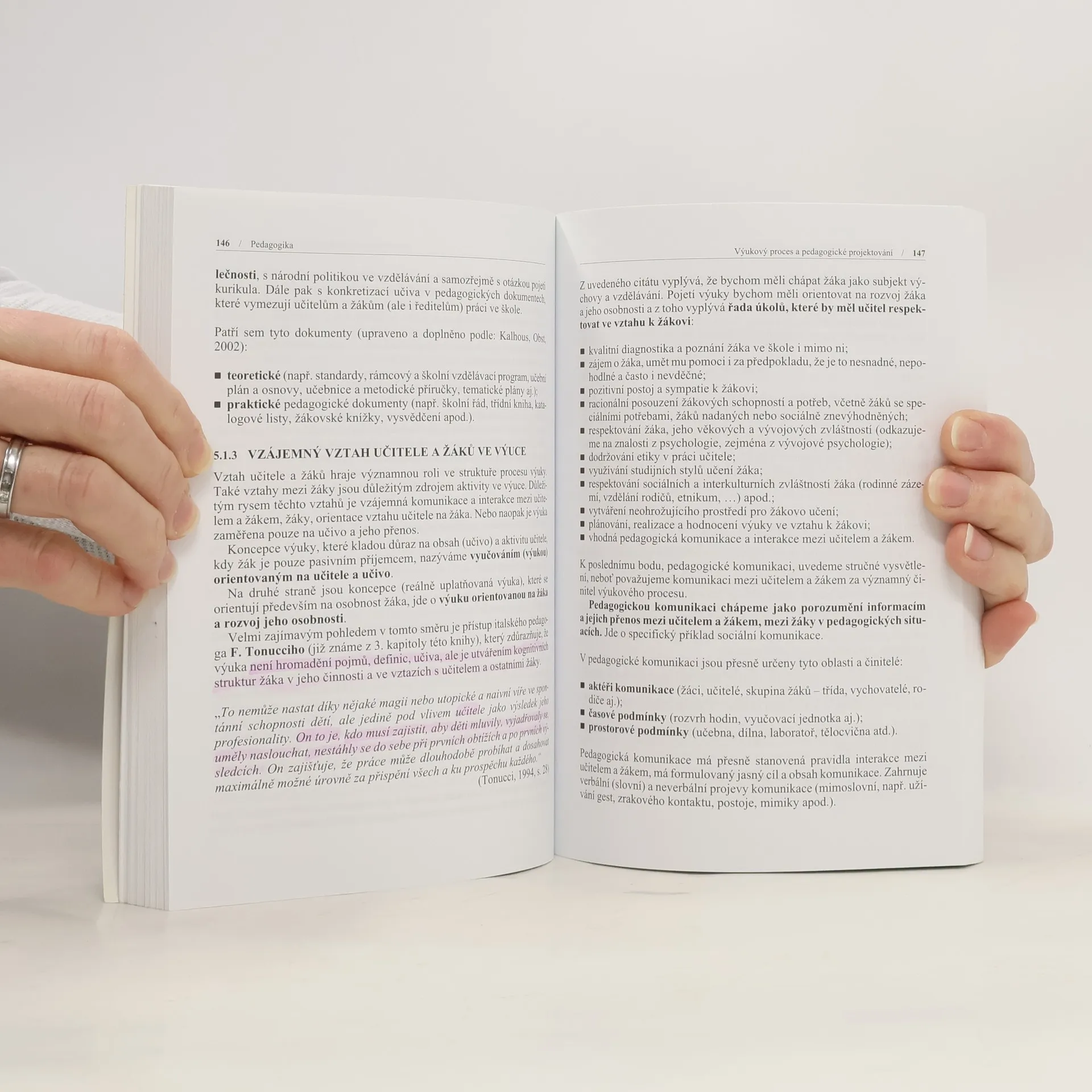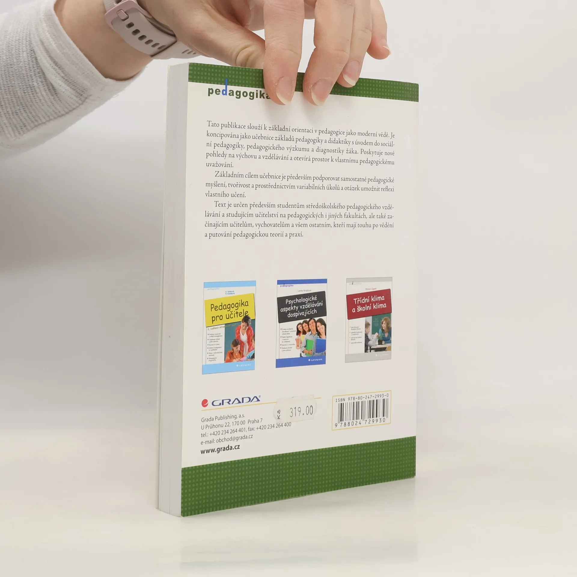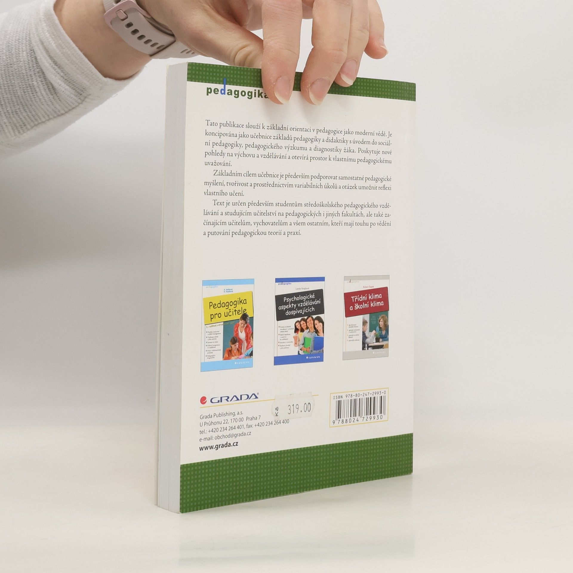 Tato publikace slouží k základní orientaci v pedagogice jako moderní vědě. Je koncipována jako učebnice základů pedagogiky a didaktiky s úvodem do sociální pedagogiky, pedagogického výzkumu a diagnostiky žáka. Poskytuje nové pohledy na výchovu a vzdělávání a otevírá prostor k vlastnímu pedagogickému uvažování. Základním cílem učebnice je především podporovat samostatné pedagogické myšlení, tvořivost a prostřednictvím variabilních úkolů a otázek umožnit reflexi vlastního učení. Text je určen především studentům středoškolského pedagogického vzdělávání a studujícím učitelství na pedagogických i jiných fakultách, ale také začínajícím učitelům, vychovatelům a všem ostatním, kteří mají touhu po vědění a putování pedagogickou teorií a praxí.