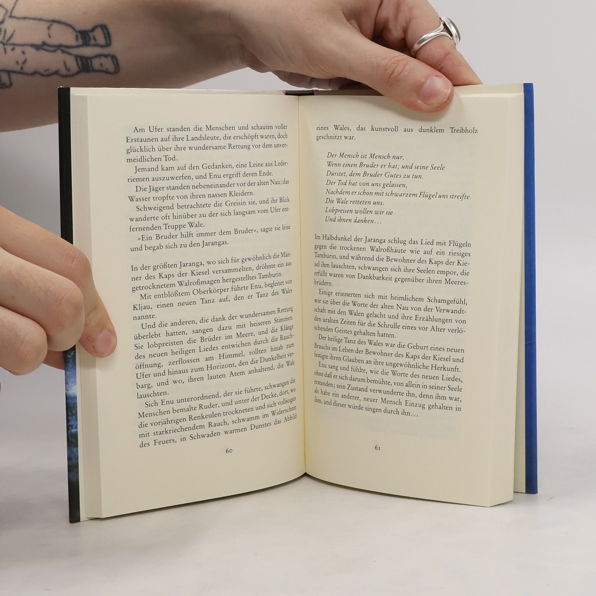 Nau ist die Urmutter des Menschengeschlechts. Aus Liebe zu ihr wird Rëu, der Wal, zum Menschen und zeugt mit ihr Waljunge und Menschenkinder. Diese poetische Schöpfungslegende der Tschuktschen von der ursprünglichen Gemeinschaft von Mensch und Wal, von der Einheit von Mensch und Natur, ist zugleich eine Vorahnung der Fragen und Probleme unserer Zeit.