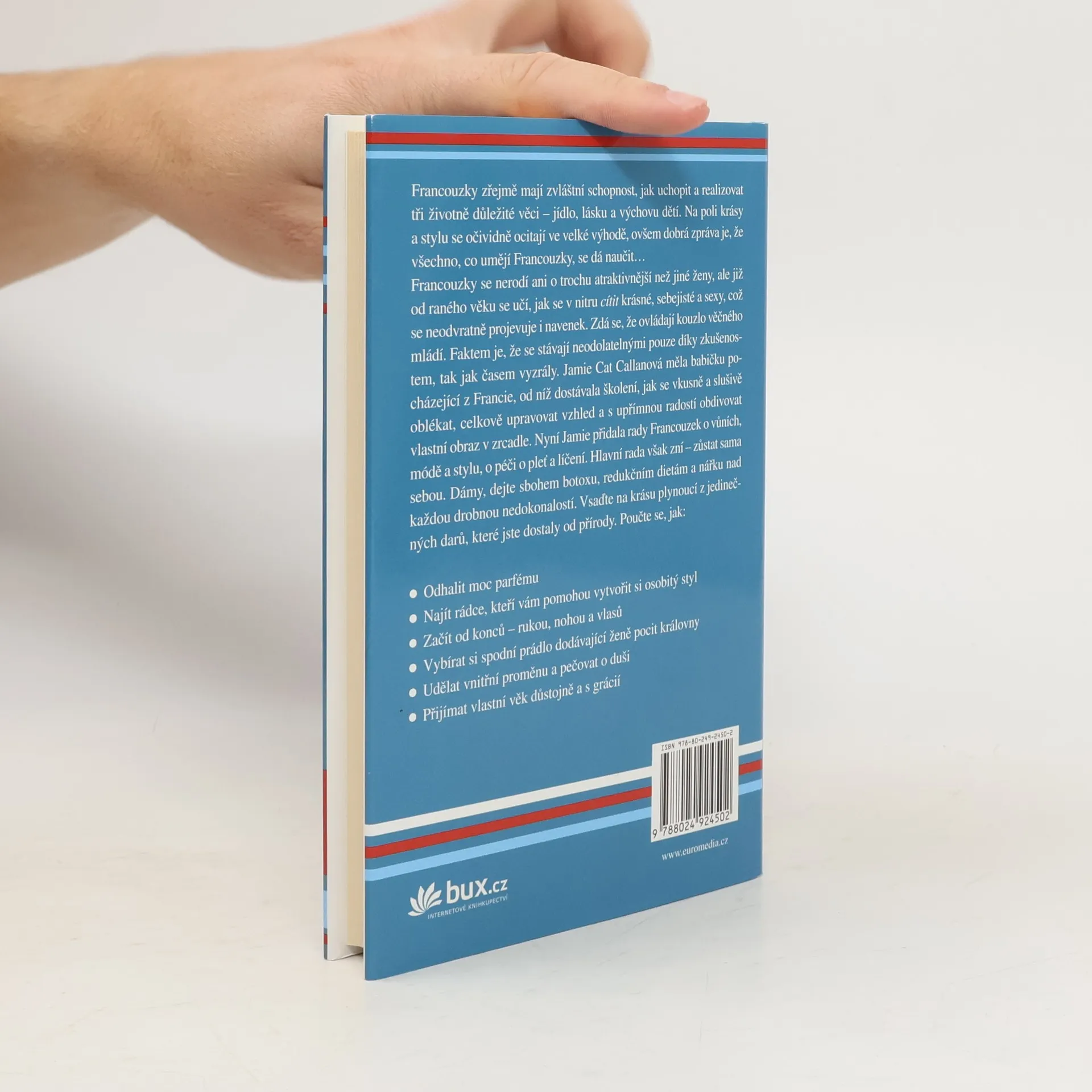 Dámy, dobrá zpráva je, že všechno, co umějí Francouzky, se můžete naučit. Zdá se, že ovládají kouzlo věčného mládí. V nové knize Jamie shromáždila rady Francouzek o vůních, módě a stylu, o péči o pleť a líčení: jak odhalit moc parfému, vytvořit si osobitý styl, začít od rukou, nohou a vlasů, vybírat si božské spodní prádlo, udělat vnitřní proměnu a přijímat vlastní věk s grácií. Dejte sbohem botoxu, redukčním dietám a pláči nad každou drobnou nedokonalostí. Vsaďte na krásu plynoucí z darů, které jste dostaly od přírody.