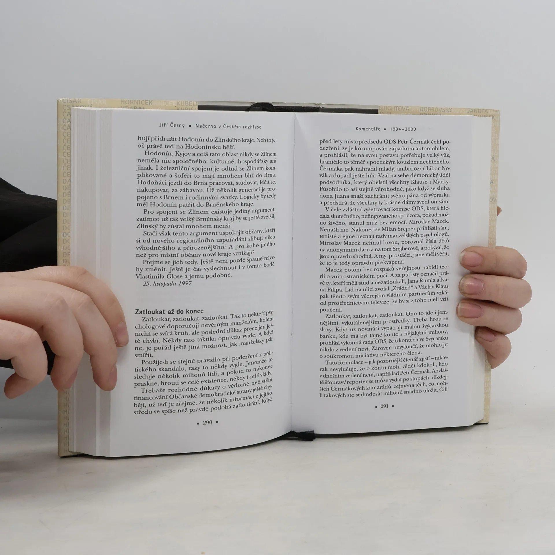 Známý hudební publicista píše a čte již řadu let každý týden jeden rozhlasový komentář pro stanici Praha. Shrnutím většiny těchto komentářů vznikla kniha, kterou je možno považovat za jeden z nejvýznamnějších výkonů novodobé české žurnalistiky. Strhující kronika současného českého kulturního, společenského a politického života je svou nadčasovostí a hloubkou srovnatelná s nejlepšími knihami článků Ferdinanda Peroutky z předválečných let. Vychází doplněno jmenným rejstříkem.