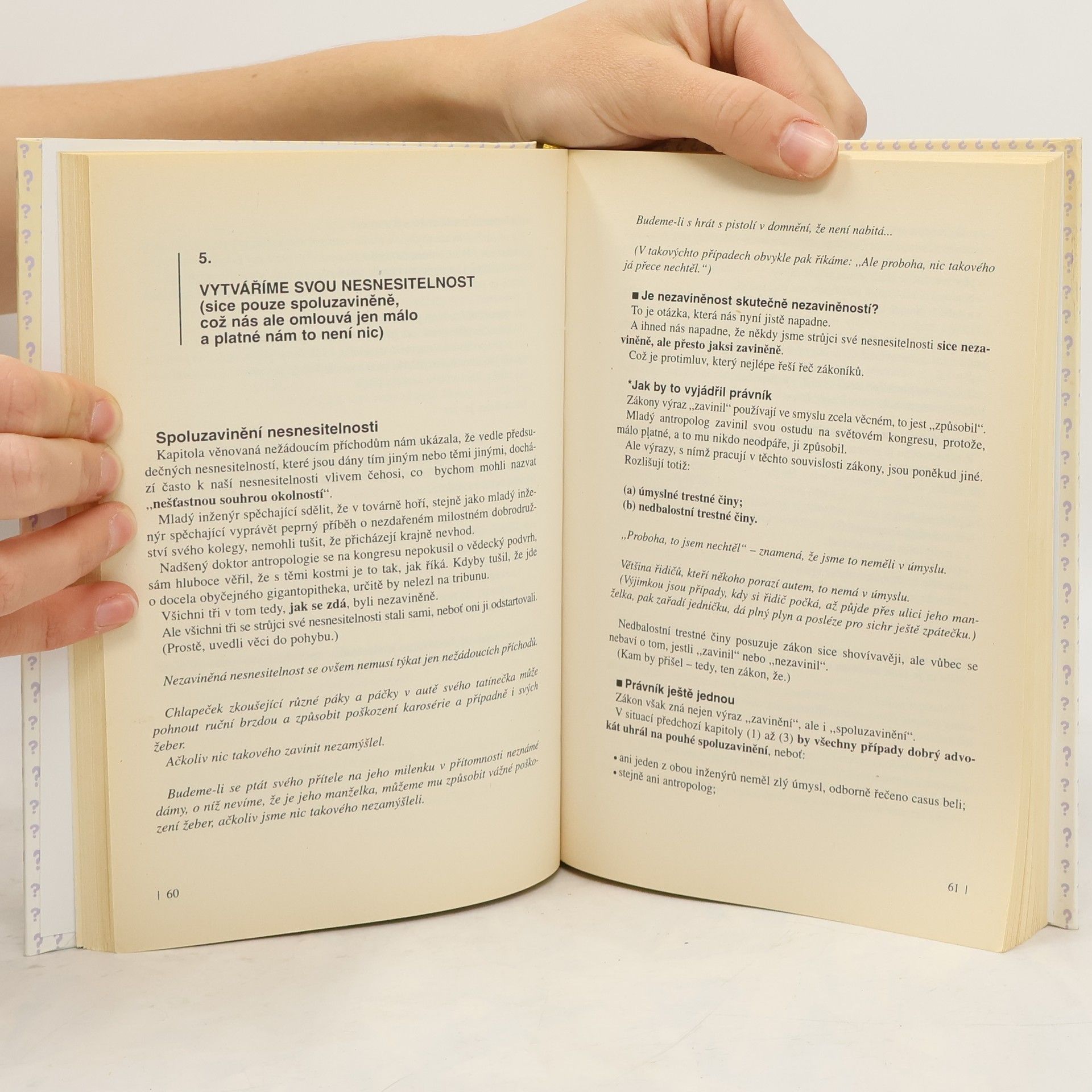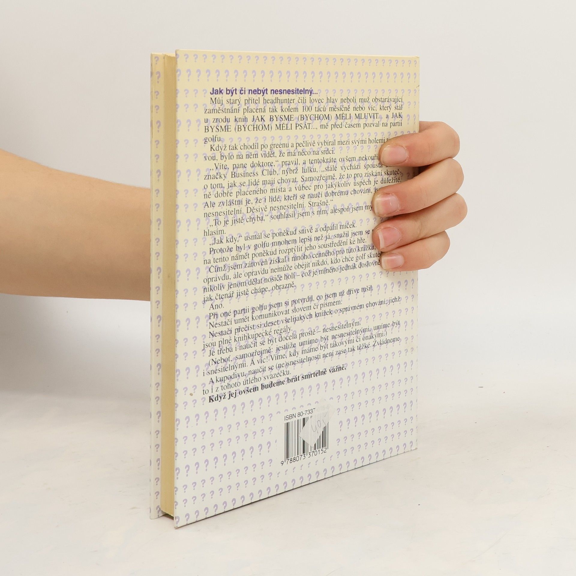 Kniha o důvodech nesnesitelnosti některých lidí druhými s návodem, jak se stát snesitelnými, neudělat (si) ostudu i jak navázat přátelství. Autor s ironickou nadsázkou charakterizuje na modelových příbězích pojem "nesnesitelnost", její podstatu od arogance po hulvátství, její zdroje v předsudcích druhých lidí a její projevy při nevhodném příchodu či jiných příležitostech. Další kapitoly dokonce povyšují nesnesitelnost na přednost, protože člověk nesnesitelných vlastností je upřímnější nežli pokrytec. Publikace je využitelná nejen ve vztazích vedoucí - podřízený, ale i při zahraničních cestách, protože uvádí rozdíly v chápání snesitelnosti v různých státech i kulturách.