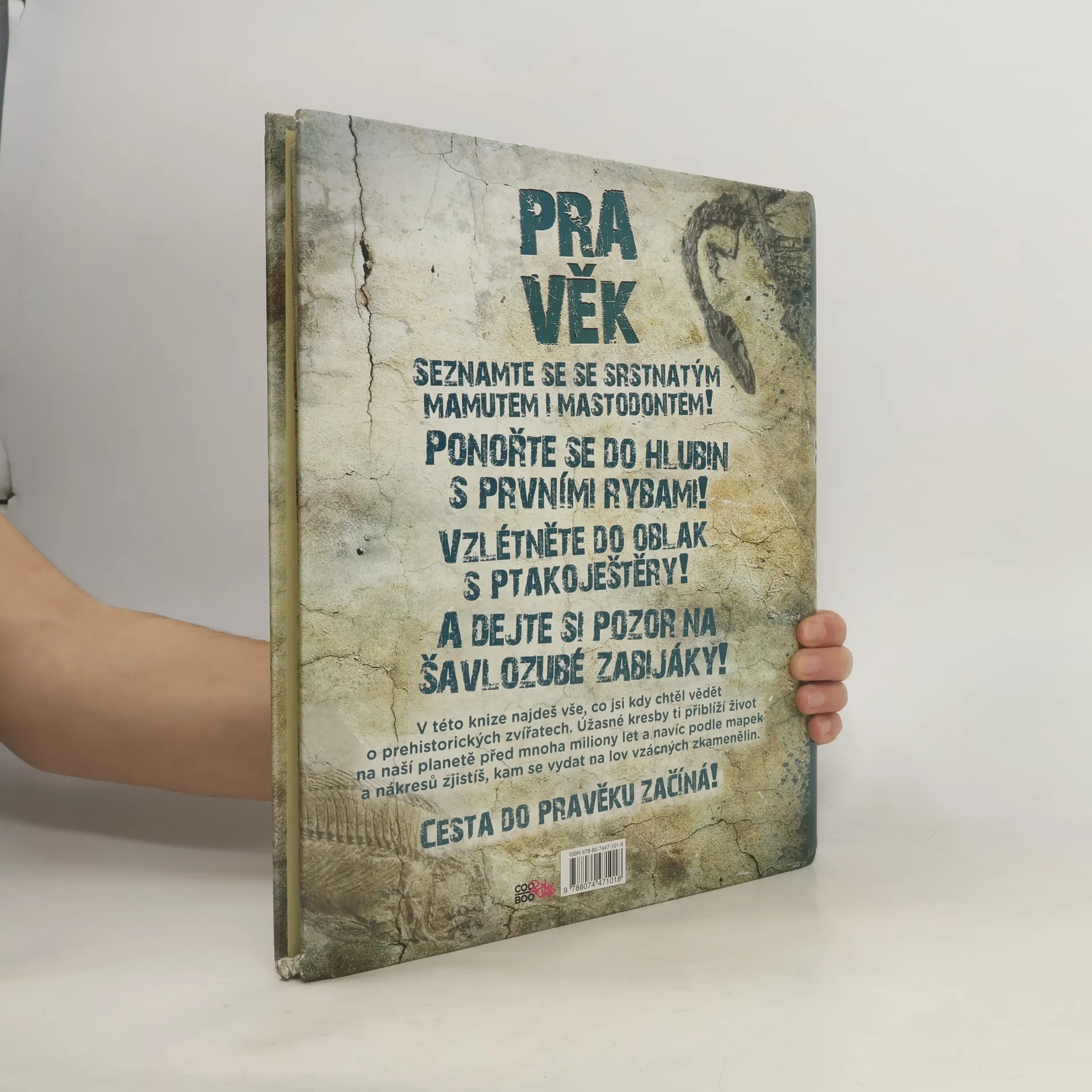 Cesta do pravěku začíná! V této knize najdeš vše, co jsi kdy chtěl vědět o prehistorických zvířatech. Úžasné kresby ti přiblíží život na naší planetě před mnoha miliony let a navíc podle mapek a nákresů zjistíš, kam se vydat na lov vzácných zkamenělin. Navíc se seznámíš se srstnatým mamutem a mastodontem, zaplaveš si s prvními rybami, budeš moct obdivovat velkolepé ptakoještěry, ale dej pozor na šavlozubé zabijáky!