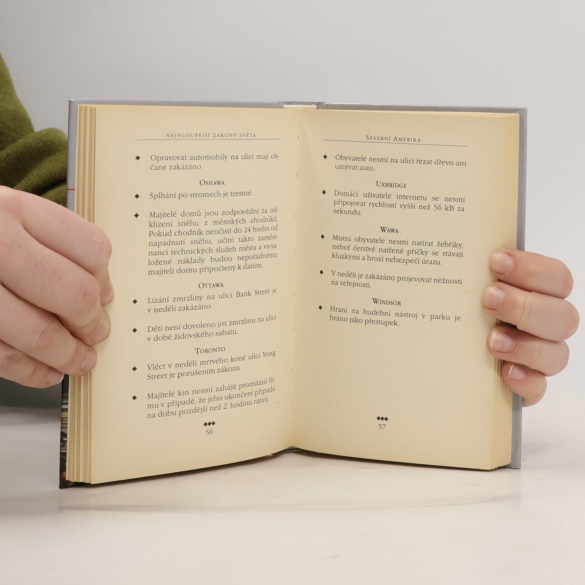 Sbírka paradoxních zákonů z různých měst, států a krajů obsahuje nařízení, která už dávno ztratila opodstatnění a vyvolávají v nás smích svým anachronismem a absurditou.