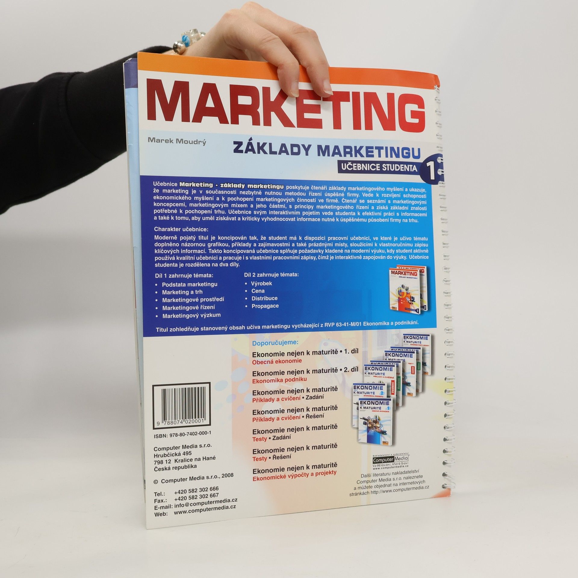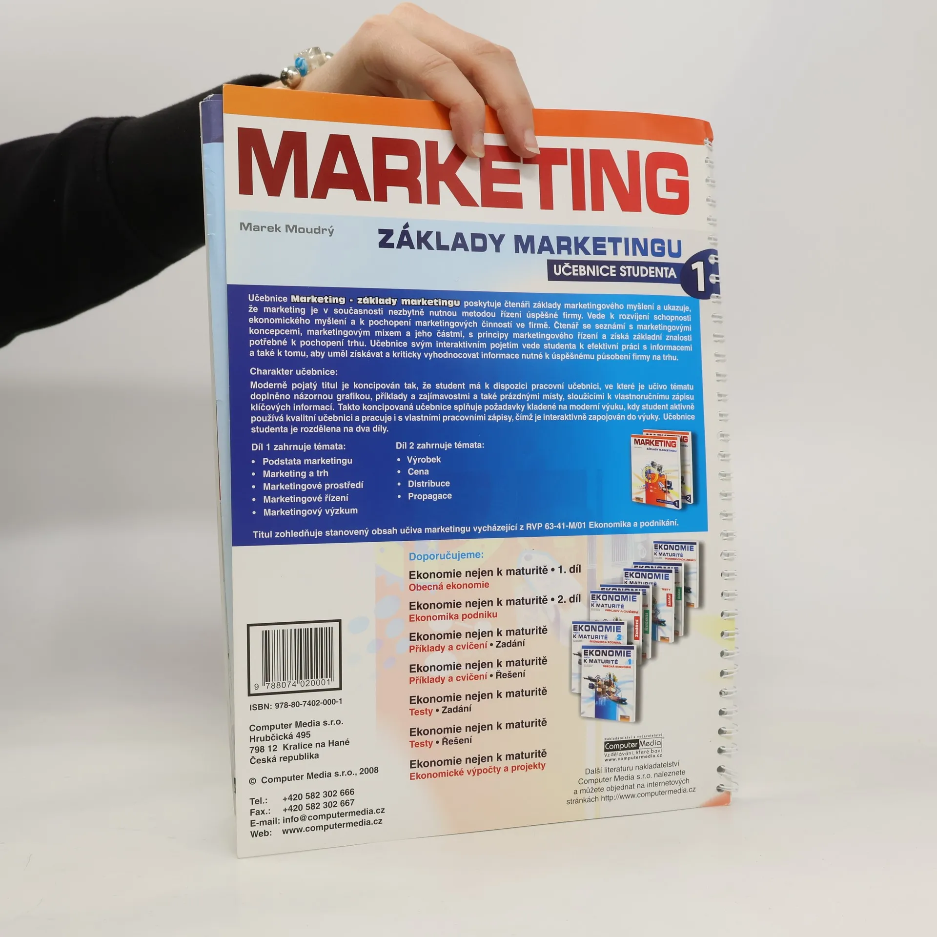 Učebnice poskytuje čtenáři základy marketingového myšlení a ukazuje, že marketing je v současnosti nezbytně nutnou metodou řízení úspěšné firmy. Vede k rozvíjení schopnosti ekonomického myšlení a k pochopení marketingových činností ve firmě. Čtenář se seznámí s marketingovými koncepcemi, marketingovým mixem a jeho částmi, s principy marketingového řízení a získá základní znalosti potřebné k pochopení trhu. Učebnice svým interaktivním pojetím vede studenta k efektivní práci s informacemi a také k tomu, aby uměl získávat a kriticky vyhodnocovat informace nutné k úspěšnému působení firmy na trhu. Moderně pojatý titul je koncipován tak, že student má k dispozici pracovní učebnici, ve které je učivo tématu doplněno názornou grafikou, příklady a zajímavostmi a také prázdnými místy, sloužícími k vlastnoručnímu zápisu klíčových informací. Takto koncipovaná učebnice splňuje požadavky kladená na moderní výuku, kdy student aktivně používá kvalitní učebnici a pracuje i s vlastními pracovními zápisy, čímž je interaktivně zapojován do výuky. Učebnice studenta je rozdělena na dva díly.