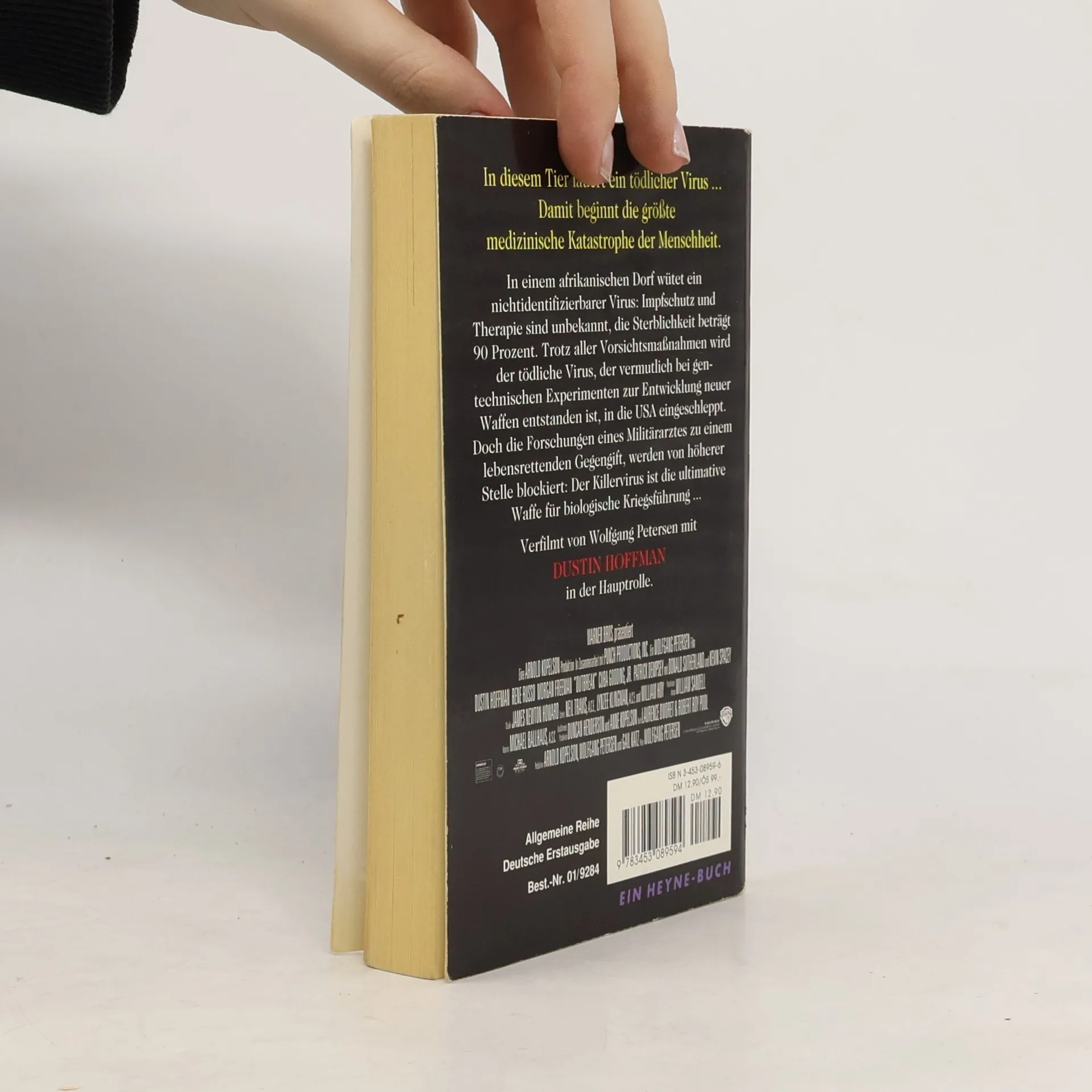 In diesem Tier lauert ein tödlicher Virus... Damit beginnt die größte medizinische Katastrophe der Menschheit. In einem afrikanischen Dorf wütet ein tödlicher Virus: Impfschutz und Therapie sind unbekannt, die Sterblichkeitsrate beträgt 90 Prozent. Trotz aller Vorsichtsmaßnahmen wird der Virus in die USA eingeschleppt. Doch die Forschungen eines Millitärarztes zu einem lebensrettenden Gegengigt werden von höherer Stelle blockiert: Der Killervirus ist die ultimative Waffe für biologische Kriegsführung...