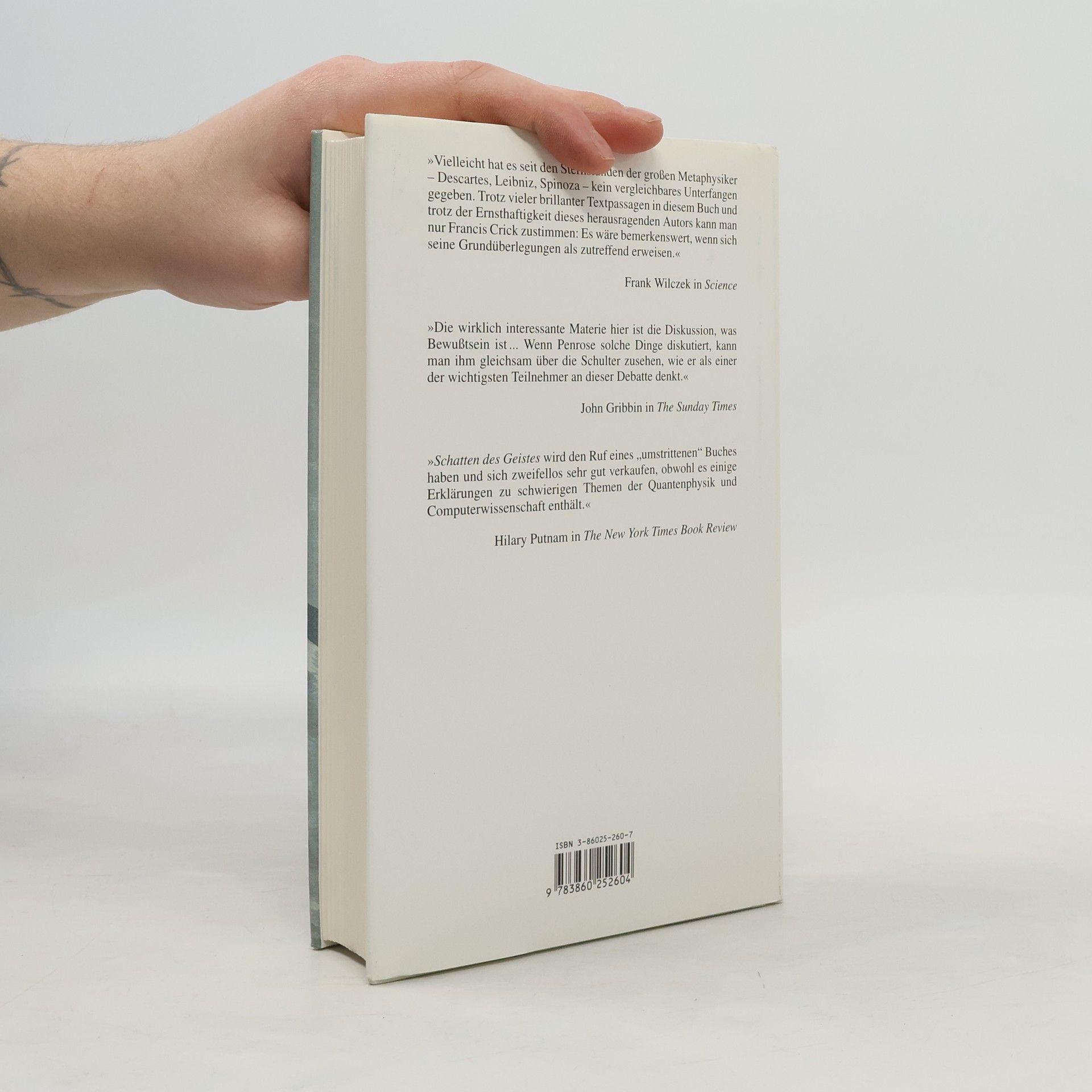 Ein fiktiver Dialog mit einem intelligenten Roboter illustriert in diesem Buch von Penrose, warum er Maschinen keine menschlichen Geistesgaben zutraut - es sei denn, die Maschinen werden nach einer völlig neuen Physik konstruiert. Wie 'Computerdenken' ist 'Schatten des Geistes' ein faszinierender und vieldiskutierter Beitrag zum Thema Geist und Bewußtsein.