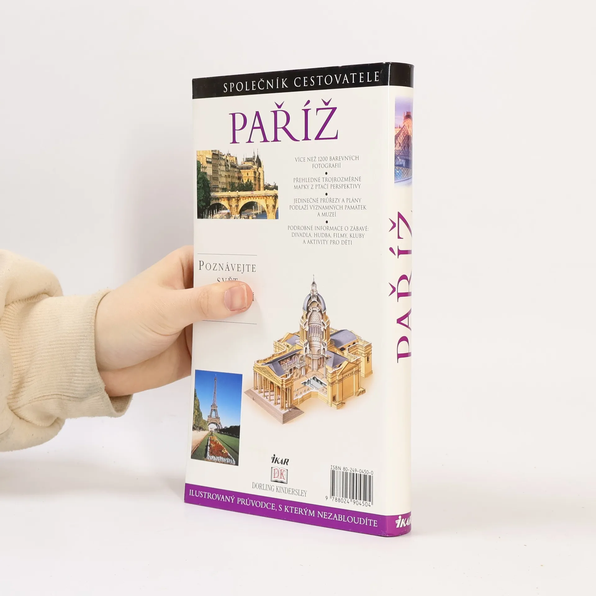 Encyklopedický průvodce nové generace, který vám umožní maximálně využít pobyt, oceníte ho před cestou, během návštěvy i po návratu domů. Obsahuje více než 1 200 barevných fotografií, tabulky "Nenechte si ujít", které vás upozorní na nejvýznamnější památky a zajímavosti, přehledné trojrozměrné mapky z ptačí perspektivy, podrobné informace o zábavě (divadla, hudba, filmy, kluby a aktivity pro děti) a mnoho dalšího. Hlavní spolupracovník: Alan Tillier. Spolupracovníci: Chris Boicos, Michael Gibson, Douglas Johnson, Lenny Borger, Karen Burshtein, Thomas Quinn Curtis, David Downie, Fiona Dunlop, Heidi Ellison, Alexandre Lazareff, Robert Noah, Andrew Sanger, Martha Rose Shulmann, David Stevens, Ian Williams, Jude Welton. Fotografie: Max Alexander, Neil Lucas, Robert O´Dea. Ilustrace: Stephen Colin, Stephen Gyapay, Maltings Partnership. Z anglického originálu „Eyewitness Travel Guides - Paris“ (Dorling Kindersley Limited, London 1993, 1997) přeložila Blanka Brabcová, Jozef Koval, Leona Maříková, Lenka Svobodová. Jazyková revize Věra Běťáková. Vydala Euromedia Group - Ikar Praha v roce 2012. Vydání sedmé.