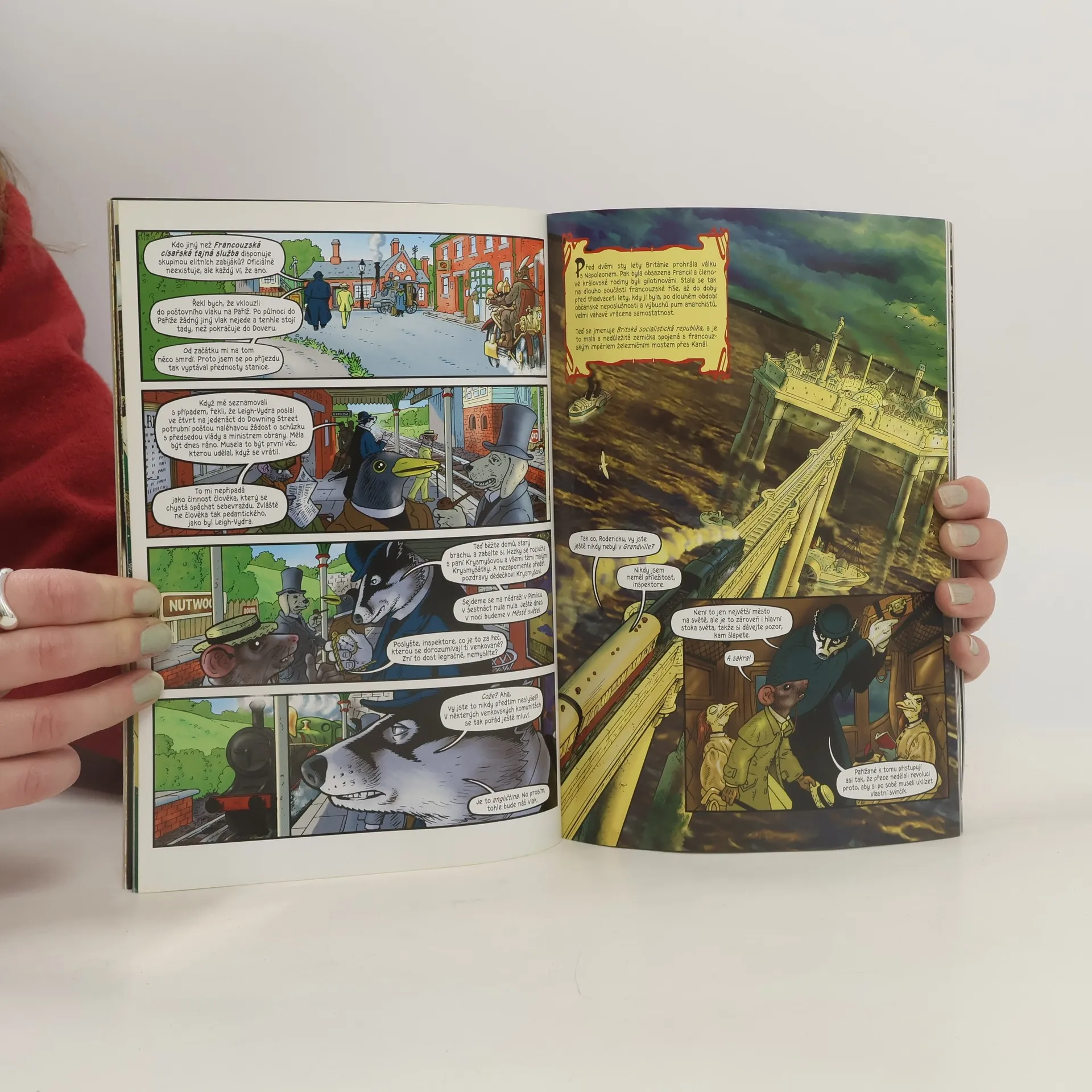 Kdo zabil Raymonda Leigh-Vydru? Jaké tajemství odhalil tento “kulturní atašé” ambasády Britské socialistické republiky v Paříži? Musíte si v Grandville opravdu dávat pozor kam šlapete? Co slyšela Sarah Blaireauová? Odpověď na tyto a mnoho dalších otázek přináší nový paropunkový vědecko-romantický thriller britského autora Bryana Talbota, který vychází v České republice ve světové premiéře s tříměsíčním předstihem oproti ostatnímu světu. Scénárista a výtvarník v jedné osobě se tentokrát rozhodl pro netradiční přístup a většina hlavních postav nakreslil jako antropomorfní zvířata, která povahami i jmény odpovídají své zvířecí přirozenosti. Prvotní zápletkou je vyšetřování smrti britského diplomata v alternativním světě, kde Francie vyhrála Napoleonské války a vládne Evropě. Po útocích anarchistů se zvětšily protibritské nálady ve společnosti a v této atmosféře detektiv-inspektor LeBrock ze Scotland Yardu nekompromisně sleduje několik stop, které ho zavádějí stále hlouběji do bludiště pařížských uliček, kde se to hemží drogovými dealery, automatony a zabijáky tajné služby. Talbot příběh opatřil skvělou kresbou, která z příběhu vytváří neuvěřitelnou jízdu, na jejímž konci si můžete jen říct: Chci ještě! Comics je poctou francouzským výtvarníkům konce 19. a počátku 20. století J. J. Grandvillovi a Albertu Robidovi (kniha je doplněná o jejich stručné životopisy).