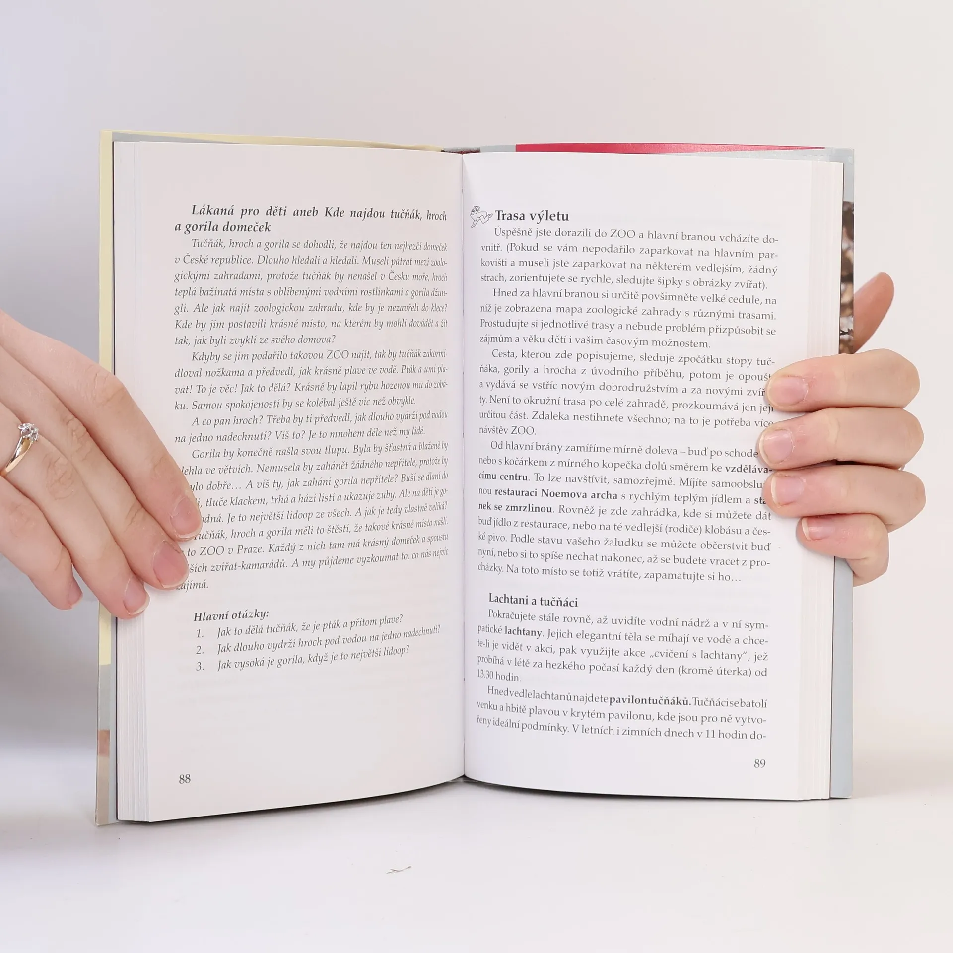 Neobvyklý turistický průvodce orientovaný na návštěvníky Prahy s malými dětmi. Je zaměřen velmi prakticky: řeší např. kde můžete děti bez problémů přebalit a nakojit, kde pro ně dostanete zdravé jídlo, kde najdete dětské koutky a hřiště apod. Zároveň se dívá na tradiční objekty turistického zájmu z dětské perspektivy. Rodičům nabízí poutavé příběhy, s jejichž pomocí mohou zvýšit zvědavost dítěte a jeho zájem o dané turisticky atraktivní místo. Návrhy jednotlivých tras jsou rozděleny podle stupňů obtížnosti pro různě velké děti (0–8 let) a nabízejí také různé alternativy podle zájmu dětí, počasí apod.